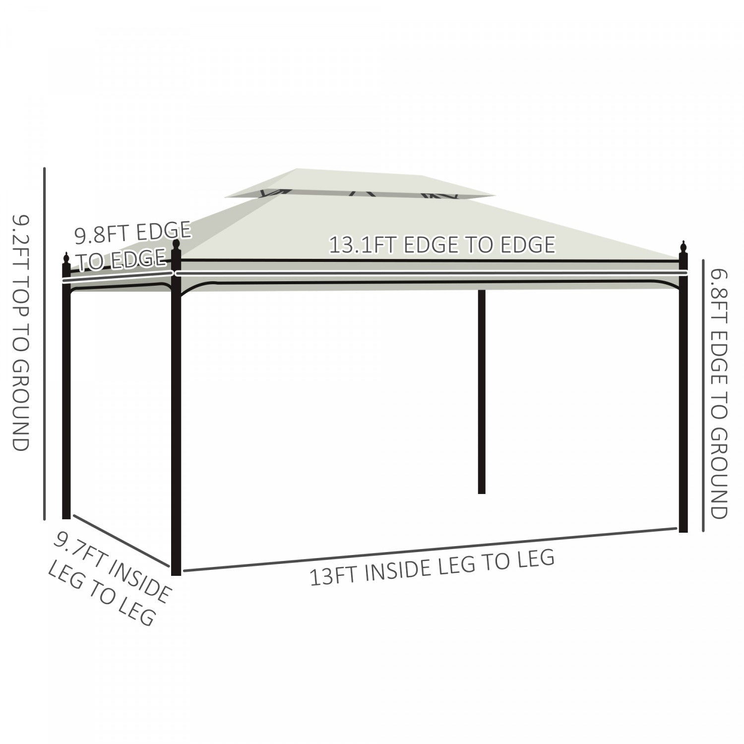 Outsunny 13'l X 10'w Gazebo Canopy Party Tent Abri De Jardin Exterieur A 2 Niveaux Avec Rideaux, Blanc Creme