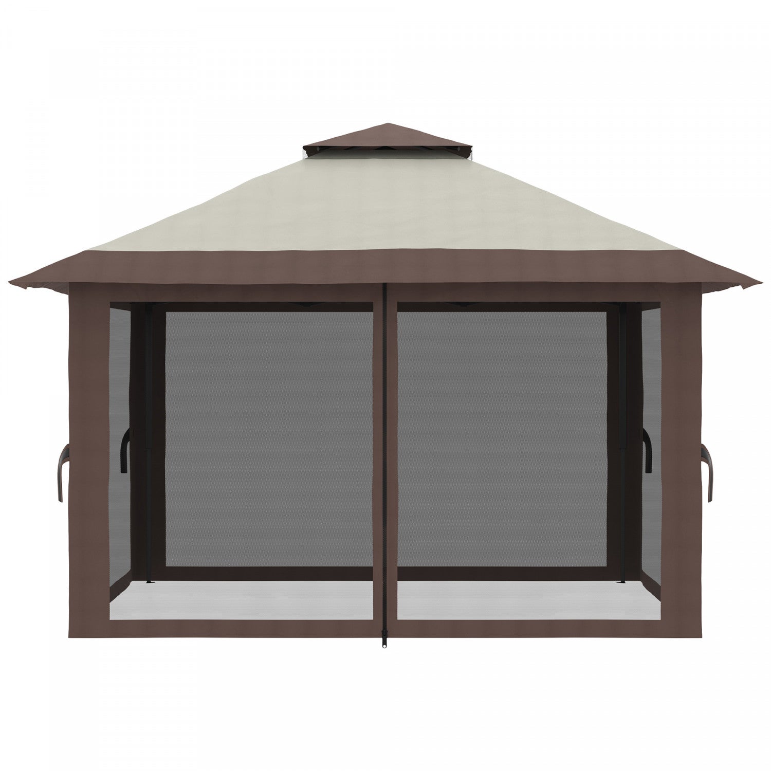 Outsunny 13' X 13' Pop Up Canopy Avec Parois Laterales En Maille, Abri De Tente A Canopy Facile Avec Toit A 2 Niveaux, Sac De Transport Sur Roues, Arriere-cour, Patio, Pelouse, Beige