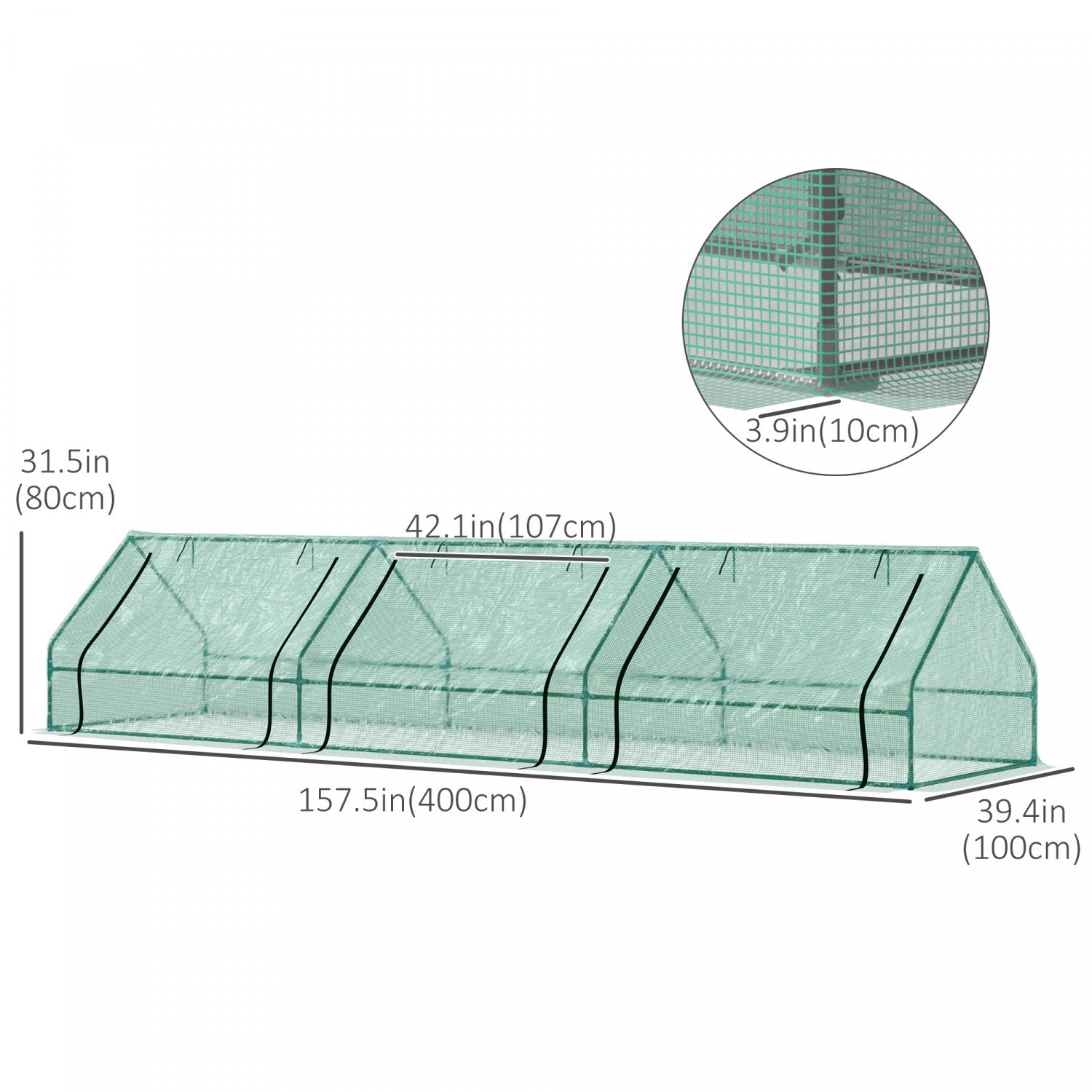 Outsunny 158" X 39" X 32" Serre A Plantes Portable Tunnel De Fleurs De Graines De Jardin En Pleine Croissance Tente A 3 Grandes Portes Coulissantes A Glissiere Pour Jardiniere De Jardinage, Vert