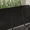 | Renseignements supplémentaires | - Couleur : noir ; - Materiau : acier, aluminium, polyester, tissu Texteline ; - Dimension globale : 77,25" L x 50,5" P x 67,75" H (196 x 128 x 172 cm) ; - Taille du siege : 56" L x 19,75" P (142,5 x 50) ; - Hauteur du dossier : 27,25" (69 cm) ; - Hauteur du siege au sol : 15,25" (39 cm) ; - Taille de la pochette d'accoudoir : 13"L x 15,75"W (33 x 40 cm) ; - Capacite de poids : 660 lb (300 kg) ; - Etiquette de l'article : 84A-110V02BK ; |
