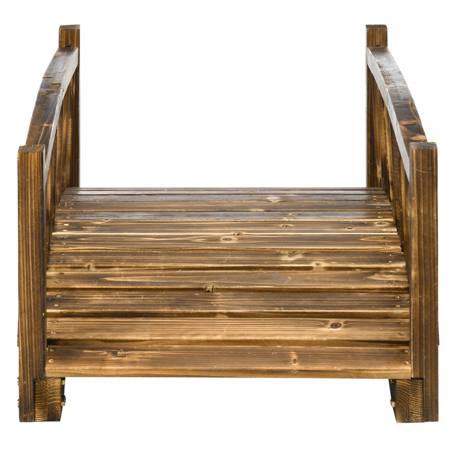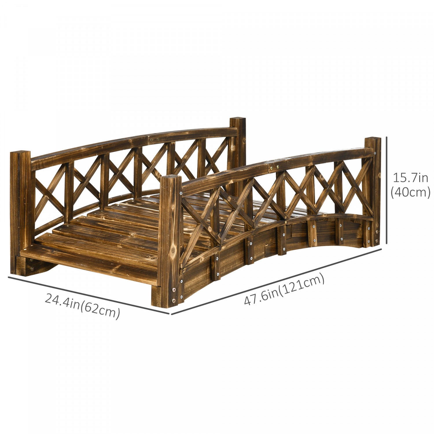 Le pont de jardin en bois avec rails d'Outsunny est parfait pour etre utilise comme decoration paysagere charmante dans un jardin d'arriere-cour, pres d'un etang ou au-dessus d'un petit ruisseau. Fabrique en bois de sapin massif avec une peinture resistante aux intemperies pour resister a la pourriture, aux fissures et aux fentes, le pont d'etang est a la fois magnifique et durable.