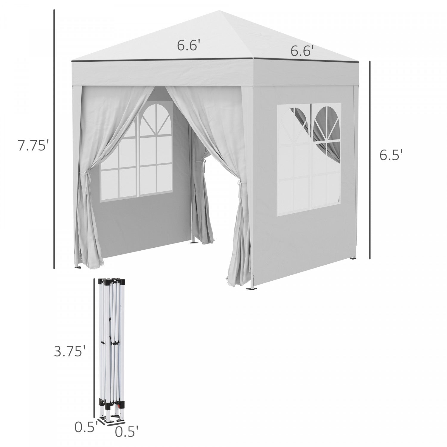 Outsunny 6.6x6.6ft Tente De Fete Escamotable Pour L'exterieur Avec Parois Laterales Blanc