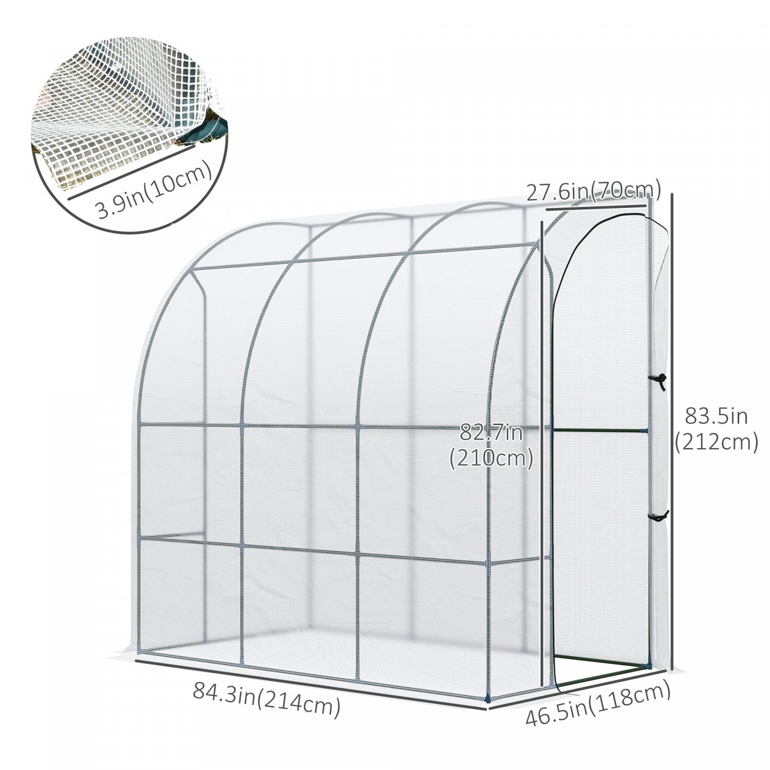 Outsunny 7' X 4' X 7' Serre De Jardin Adossee Porte Zippee Enroulable Couverture Pe Resistante Aux Uv Et Design Compact Acier Blanc