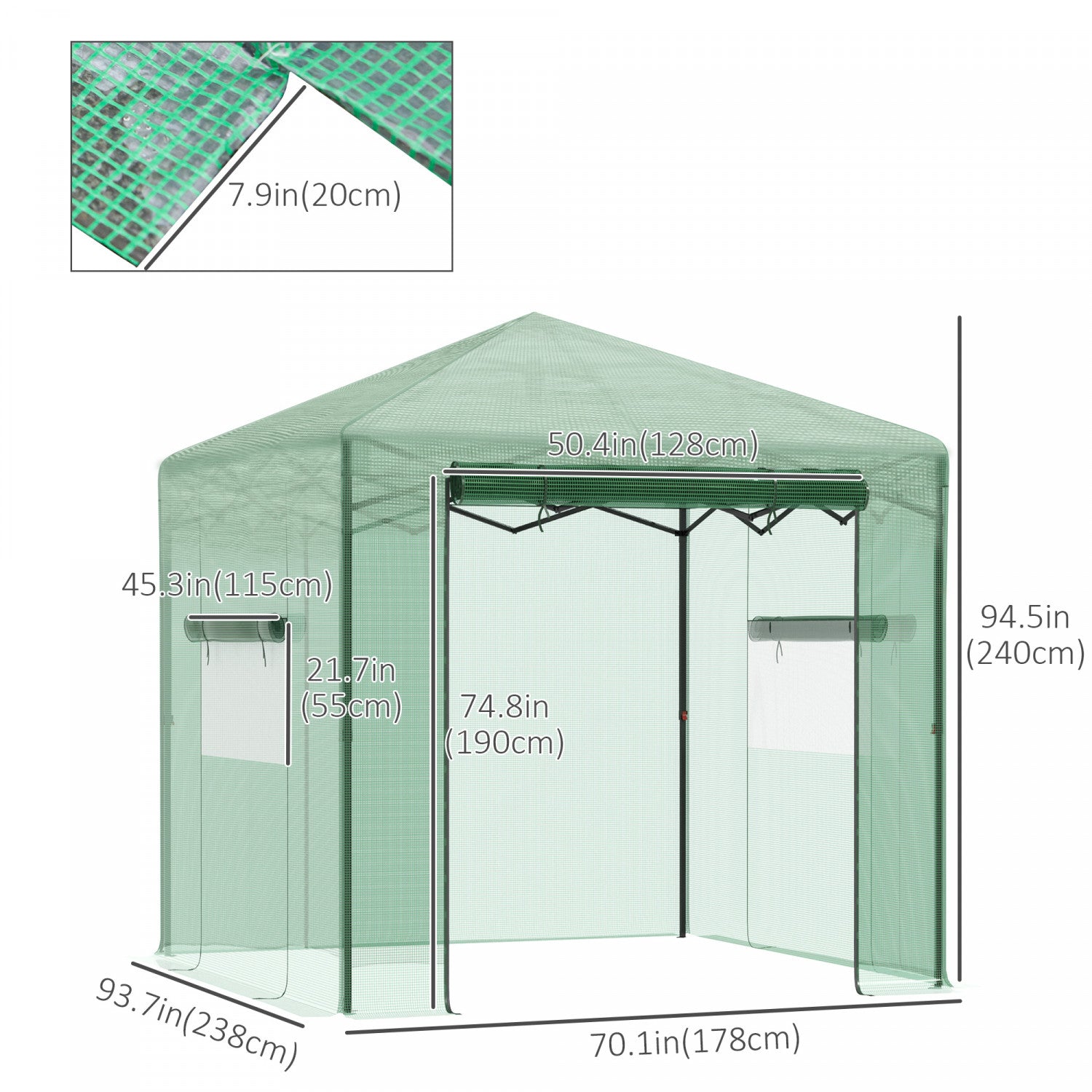 Outsunny 8' X 6' Maison Chaude A Effet De Serre Portable Avec Porte Enroulable Et 2 Fenetres D'exterieur Pour Plantes Jardin Pliable, Vert