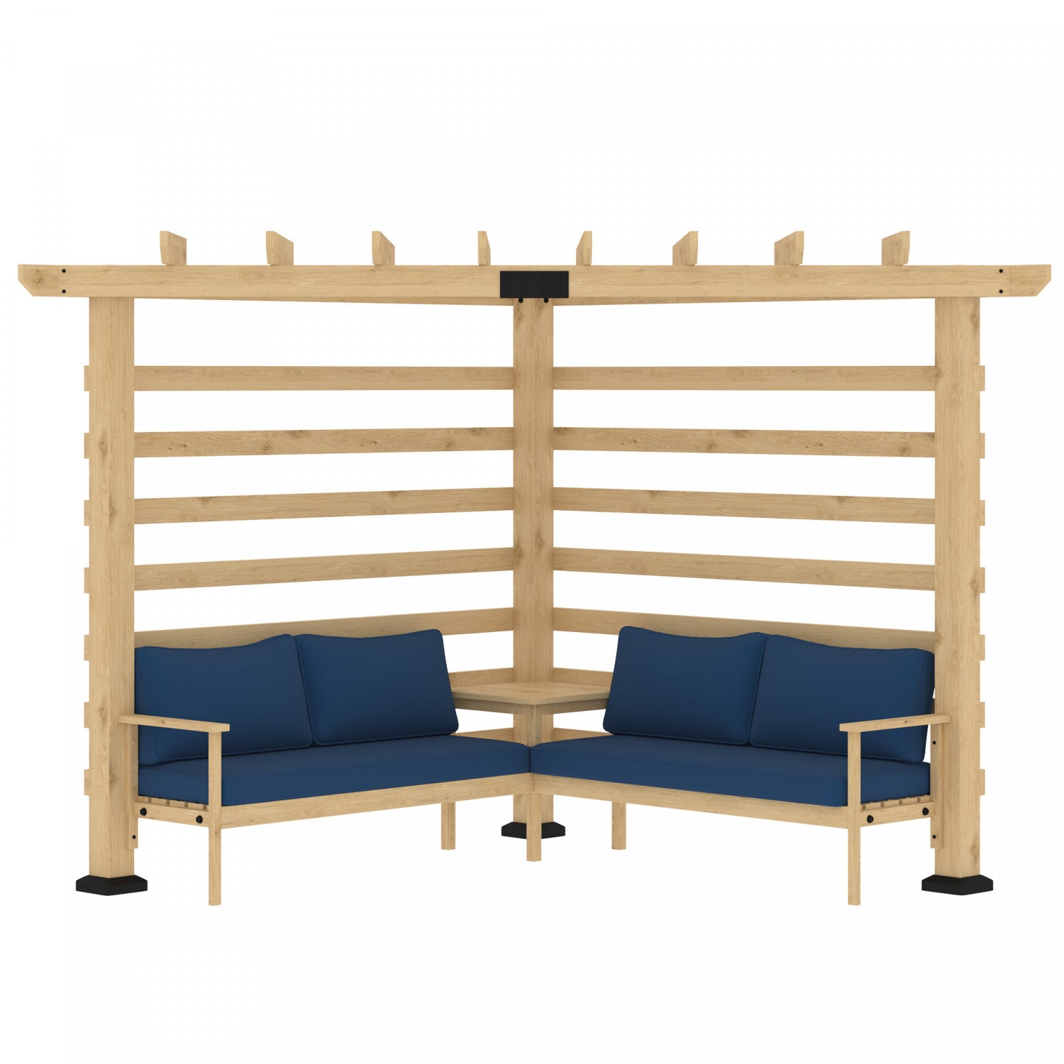 Outsunny Pergola D'angle 8.7' X 8.7' Avec Ensemble De Conversation Et Coussins, Pergola D'exterieur En Bois De Sapin Avec Table D'appoint Pour Jardin, Terrasse, Naturel Et Bleu