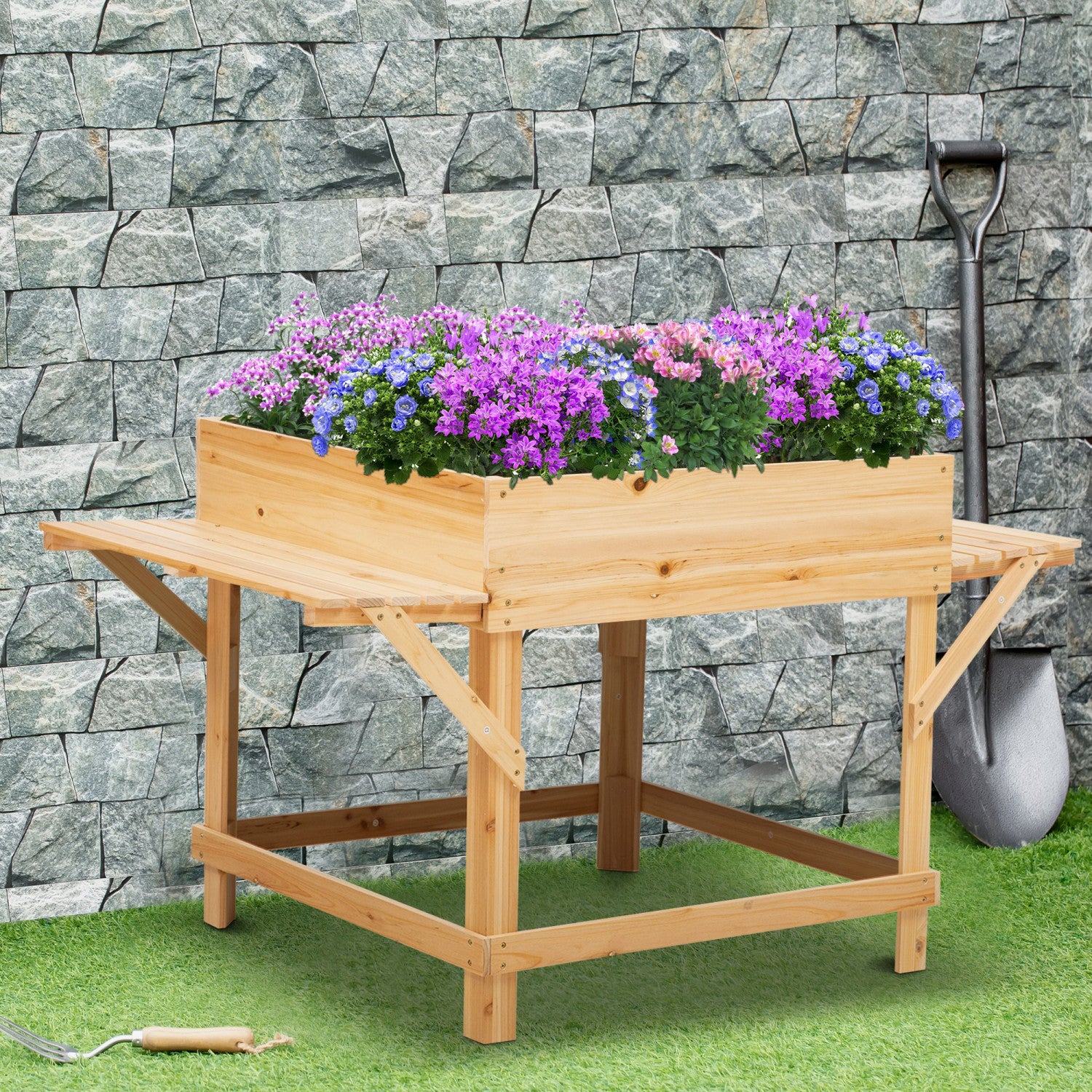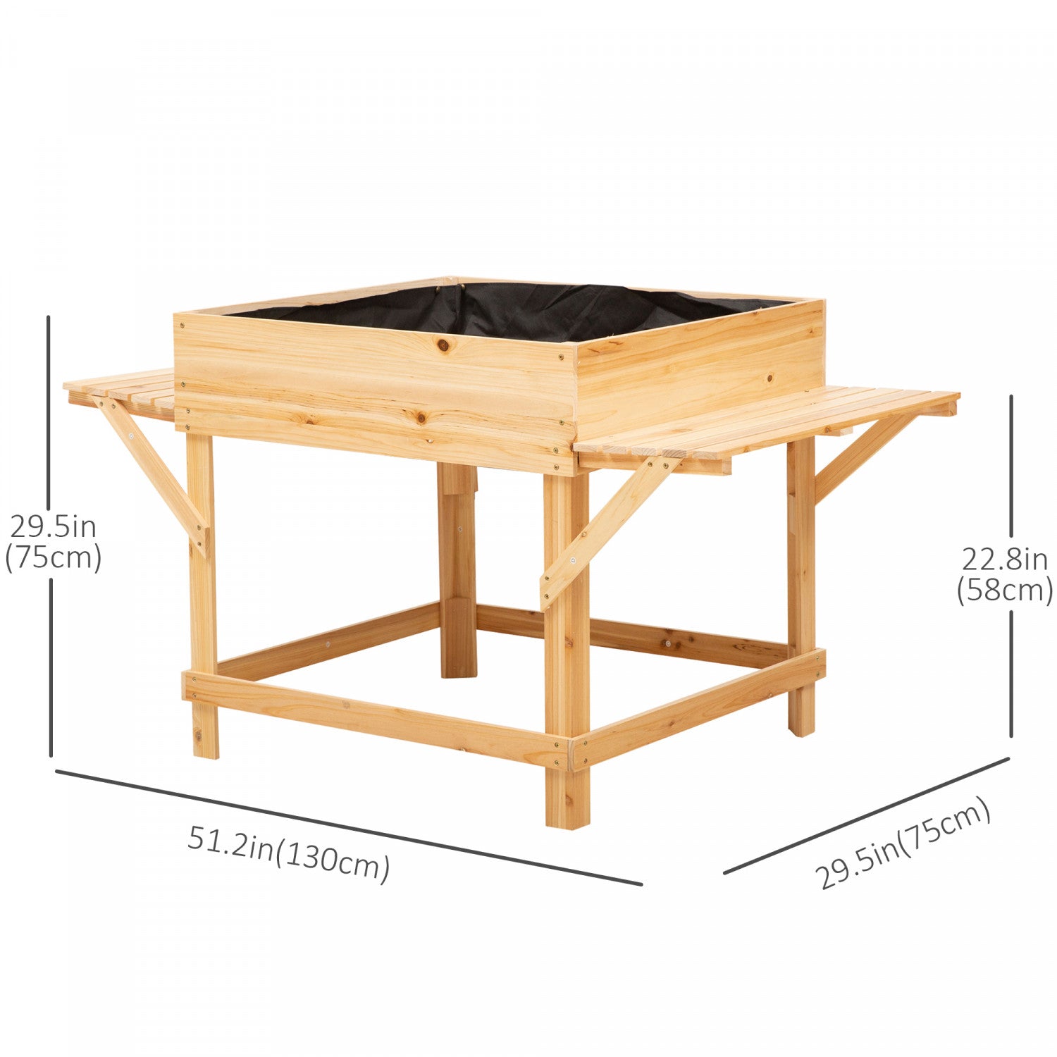 Lit De Jardin Sureleve Outsunny Avec Sac En Tissu Non Tisse, Boite A Fleurs Pour La Culture D'herbes Et De Plantes , Construction En Bois Massif 51,5" X 29,5" X 29,5"