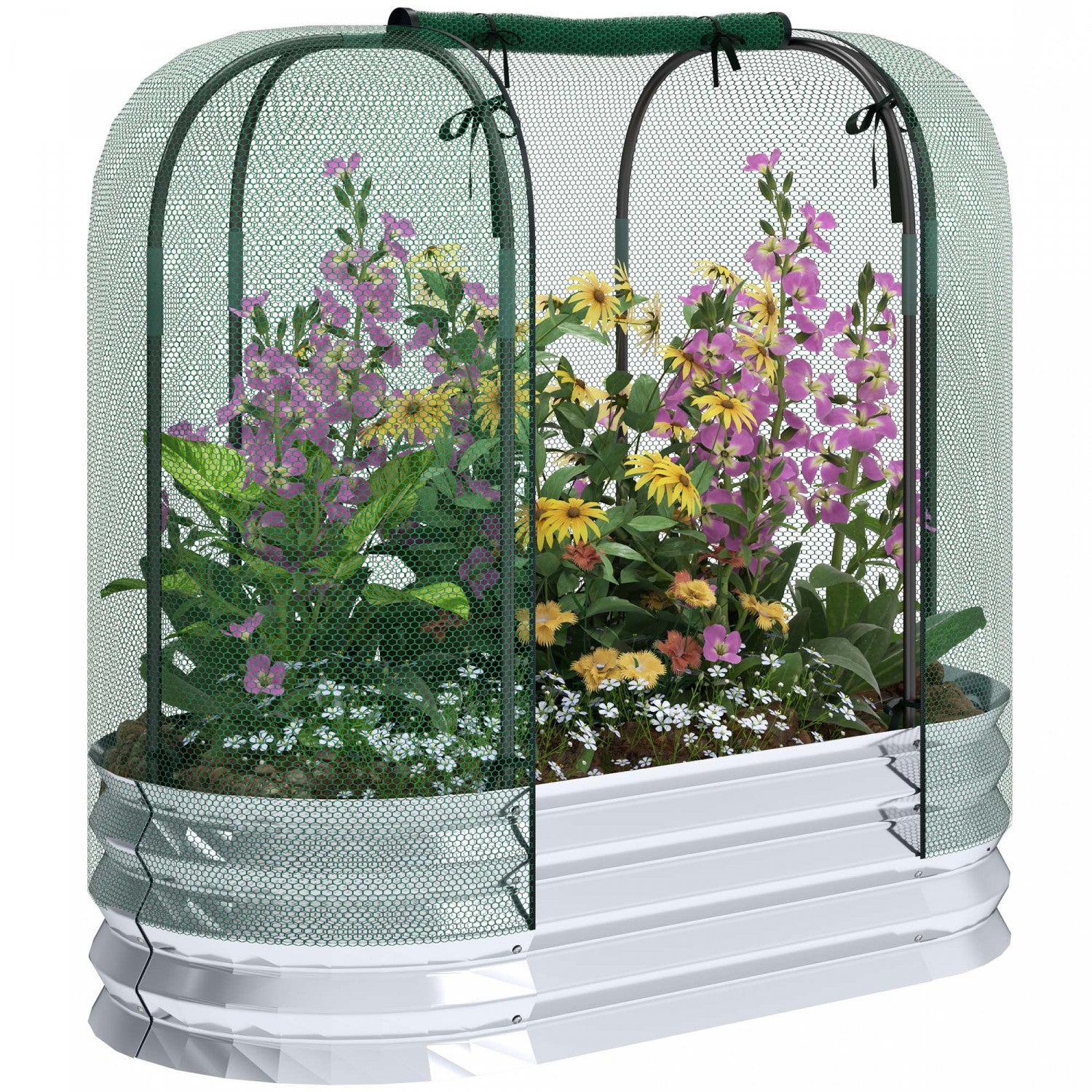 Outsunny Lit De Jardin Galvanise Avec Cage De Culture, Jardiniere En Metal
