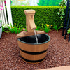 Key Features | - Cette fontaine en bois peut servir d'ornement de jardin ou de sculpture d'exterieur ; - Elle est ideale pour votre cour, votre patio ou votre jardin ; - La construction en bois de sapin massif avec une finition brulee attrayante est concue pour resister aux intemperies ; - Ce tonneau rond avec revetement sert de sortie pour l'eau pompee qui s'ecoule sous forme de fontaine ; - Pompe a eau electrique avec un bouton pour controler le debit ; - Un assemblage facile et rapide est necessaire ; |