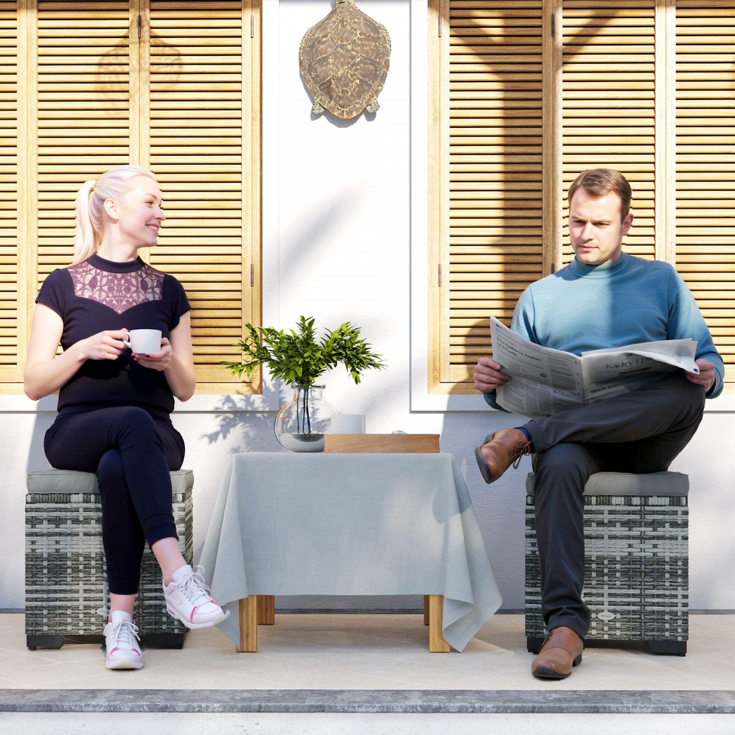 | Key Features | - Les couvercles s'ouvrent pour faciliter le rangement de divers objets ; - Les coussins epais et moelleux en coton offrent un confort superieur ; - Les coussins sont munis de fermetures eclair pour un nettoyage facile ; - Le cadre en acier peint par poudrage resiste aux intemperies ; - Le rotin PE resistant aux intemperies s'harmonise avec la decoration exterieure et se nettoie facilement ; - Utilisation polyvalente en tant que siege supplementaire ou repose-pieds pour plus de flexibilite ; - Assemblage requis ; |