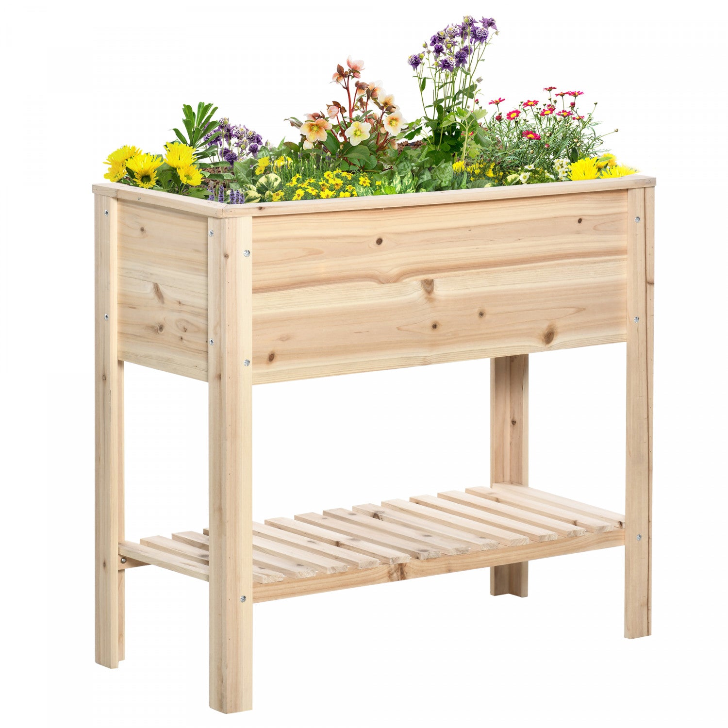 Outsunny Lit De Jardin Sureleve En Bois Avec Etagere De Rangement Naturel