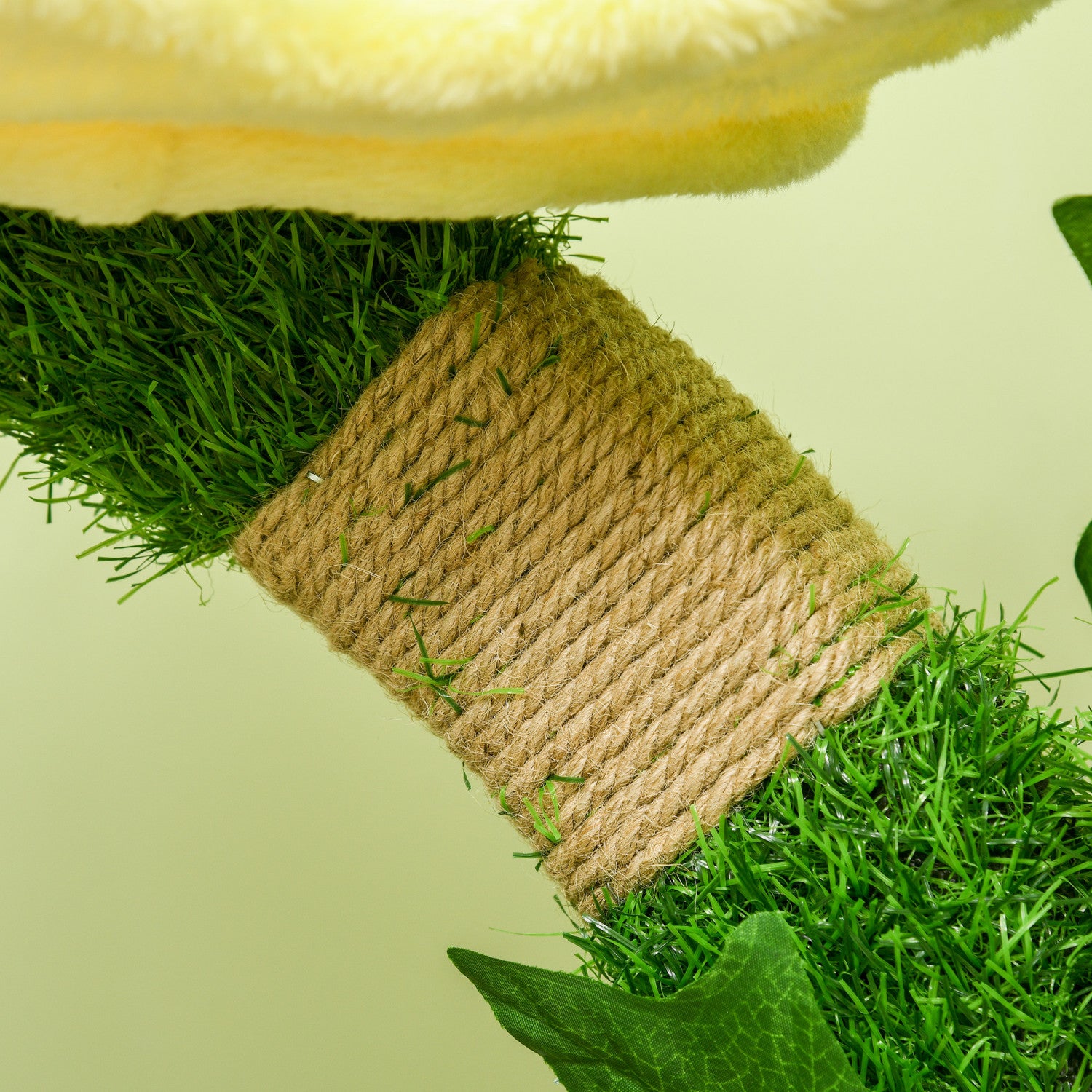 Pawhut Arbre A Chat En Peluche 18" Avec Deux Plateformes De Fleurs, Tour Pour Chat Multi-activites Avec Griffoirs En Jute, Perchoirs Sureleves, Condo Rond Spacieux Avec Porte, Vert