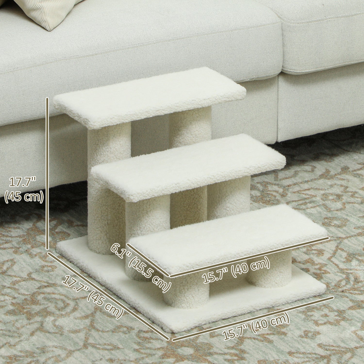 Les 3 marches griffoir PawHut convient aux animaux ages ou arthritiques, leur permettant d'acceder facilement a leur lit ou a leur perchoir prefere. Fabrique en bois d'ingenierie stable, il supporte les animaux de compagnie pesant jusqu'a 44 livres. Les marches en fausse toison sont douces pour les pattes mais robustes pour gratter, grimper et se prelasser. La conception a plusieurs niveaux avec 8 poteaux encourage les comportements naturels tout en assurant la securite de vos meubles.