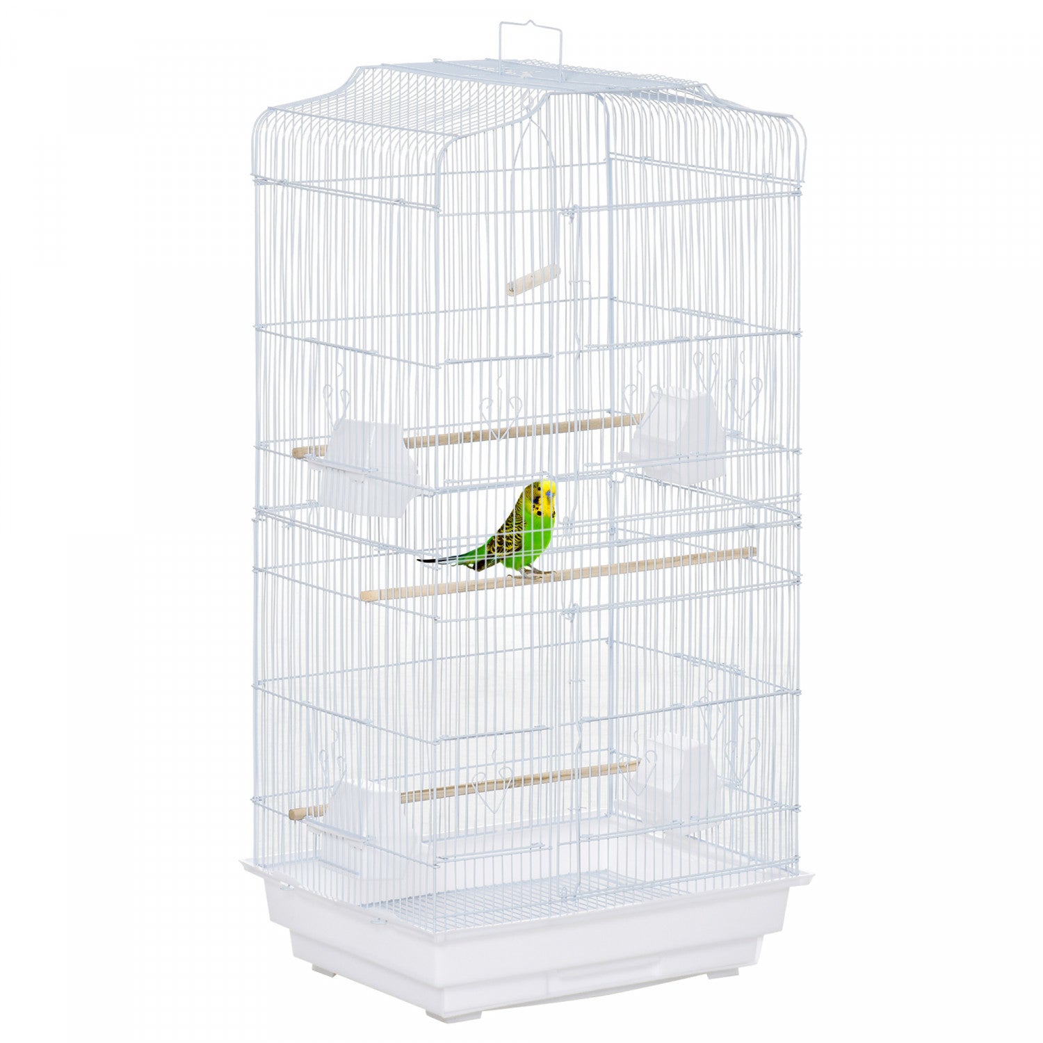 Pawhut 36" Cage A Oiseaux Ara Maison De Jeu Cacatoes Perroquet Cage De Vol 2 Portes Perchoir 4 Mangeoire Fournitures Pour Animaux Blanc