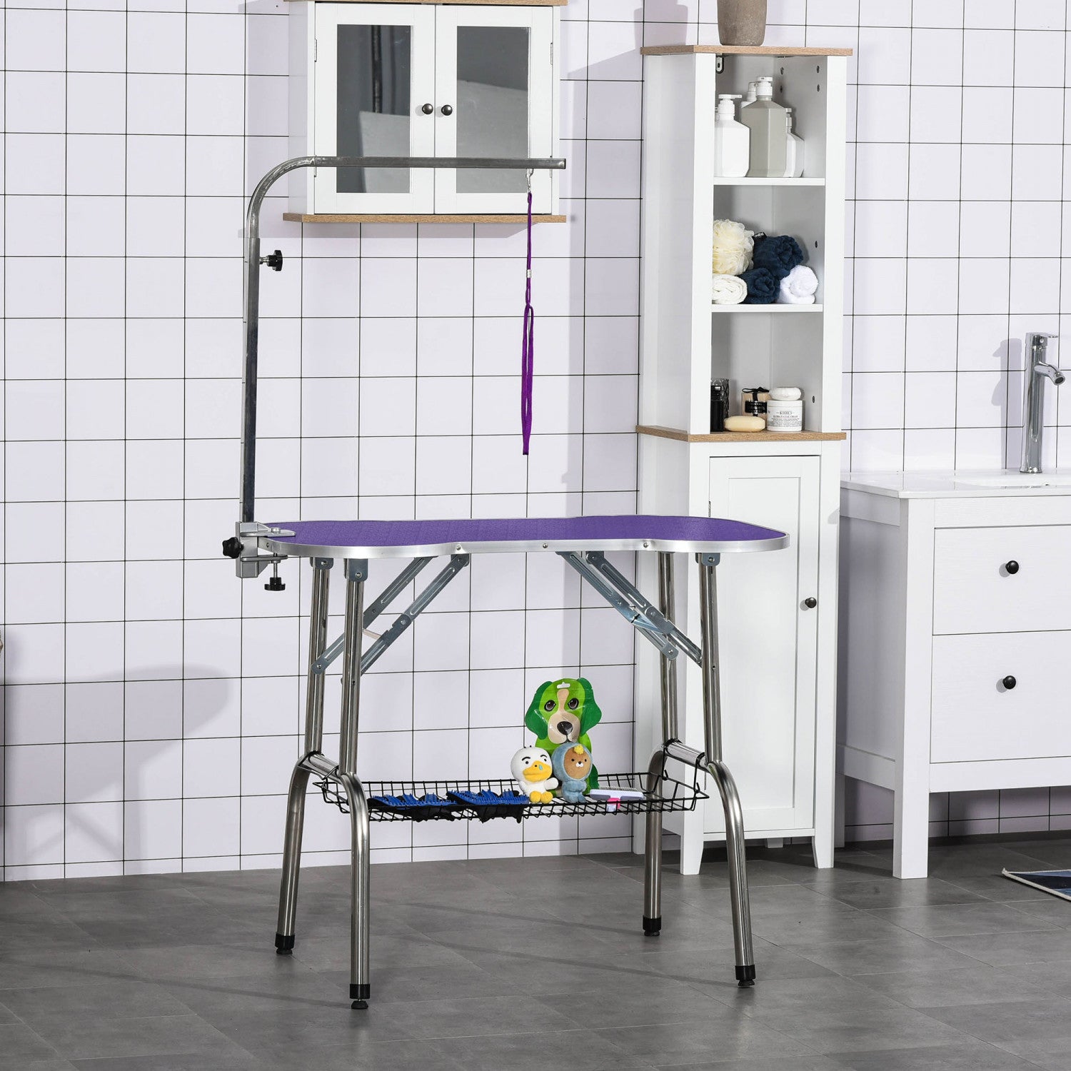 Cette table de toilettage de PawHut est un excellent investissement pour tout toiletteur professionnel ou a domicile. Elle est dotee d'une barre de toilettage reglable qui peut elever le niveau de votre ami a quatre pattes afin que vous puissiez l'atteindre facilement pour le bain, la tonte, le sechage ou le toilettage. Livree avec une elingue pour garder vos animaux de compagnie en place en toute securite pour les operations.
