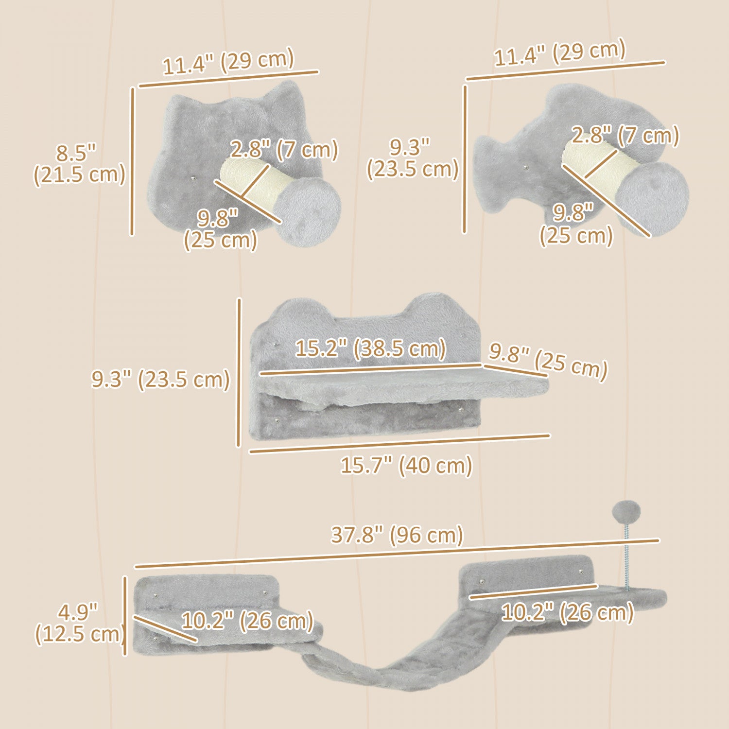 Key Features | - Les marches pour chats de forme mignonne ajoutent un attrait esthetique amusant a votre maison ; - La plate-forme de saut permet de faire de l'exercice et de jouer activement ; - La plateforme double comprend une echelle et un jouet-ballon pour plus de divertissement ; - Les poteaux sont recouverts de sisal, ce qui permet au chat de faire ses griffes ; - Fabrique en panneaux de particules, recouvert d'une peluche douce pour le confort ; - La conception murale permet d'economiser de l'espace dans votre maison et le chat dispose d'un espace prive ; - Convient a un chat de moins de 5 kg, assemblage necessaire ; |