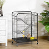 Pawhut Cage Pour Petits Animaux 37" Lapin Furet Chinchilla Avec 2 Portes Plateforme Rampe Metal Noir