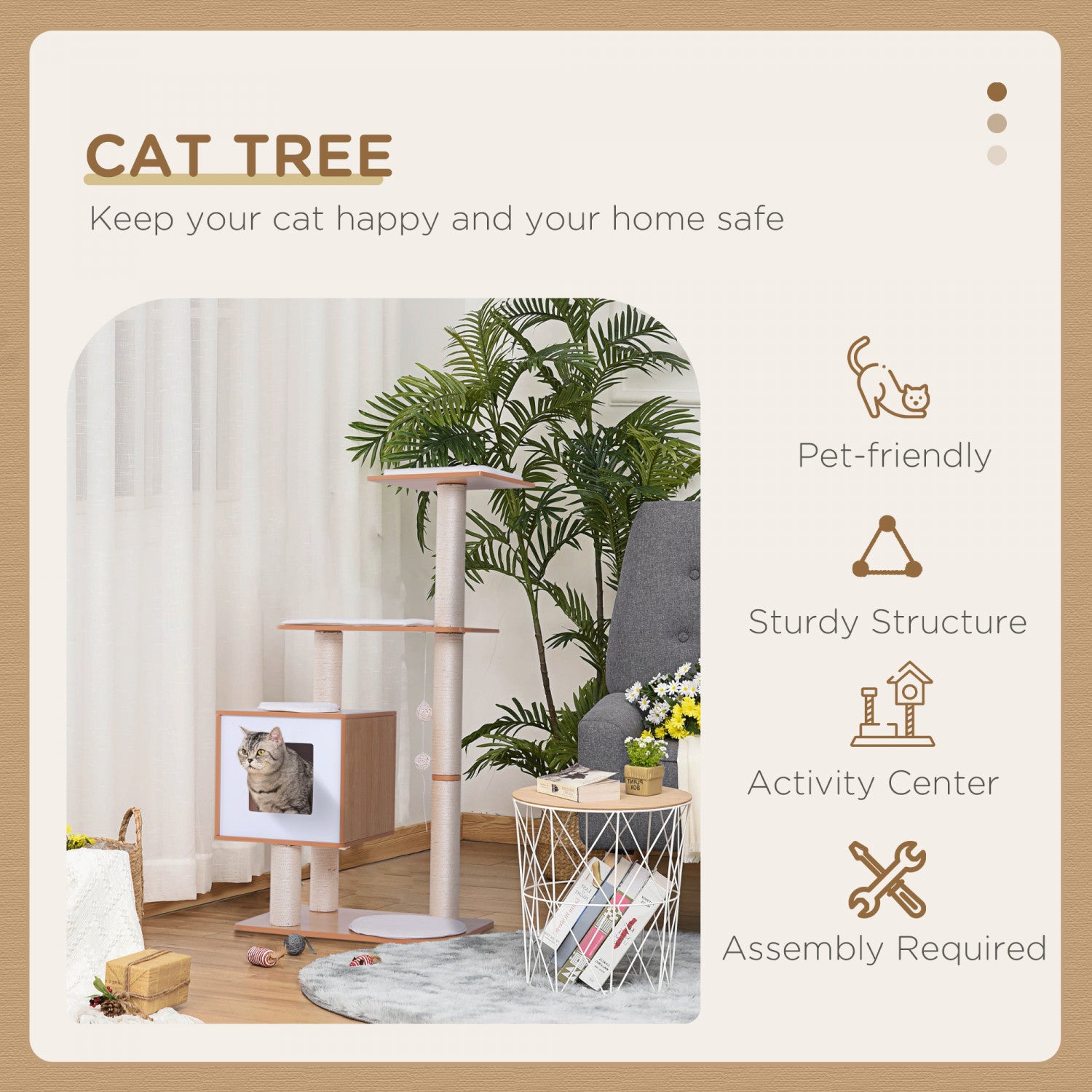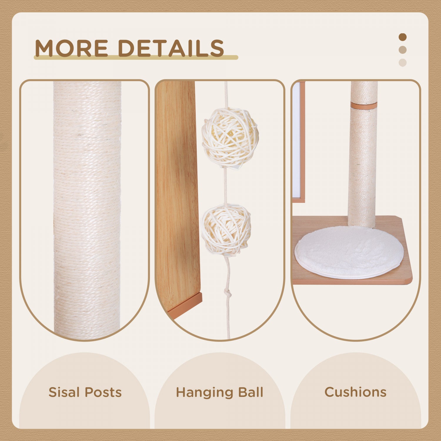 Key Features | ● Arbre a chat design contemporain cosy chic tres elegant; ● Centre d'activites variees : griffoirs, grattoirs, niche, plate-formes et jeu de boules suspendues permettant a votre chat de jouer, faire ses griffes et de s'etirer; ● Grand confort et entretien pratique, facile : coussins amovibles sur chacune des plateformes ● Securite optimale : coins biseautes de chaque plateforme; ● Sisal naturel pour le soin des griffes de votre chat et son bien-etre; ● Conception et fabrication avec des materiaux de qualite (MDF imitation bois de hetre clair avec veinage) pour un usage perenne; ● Montage facile a l'aide du manuel d'assemblage illustre fourni; |