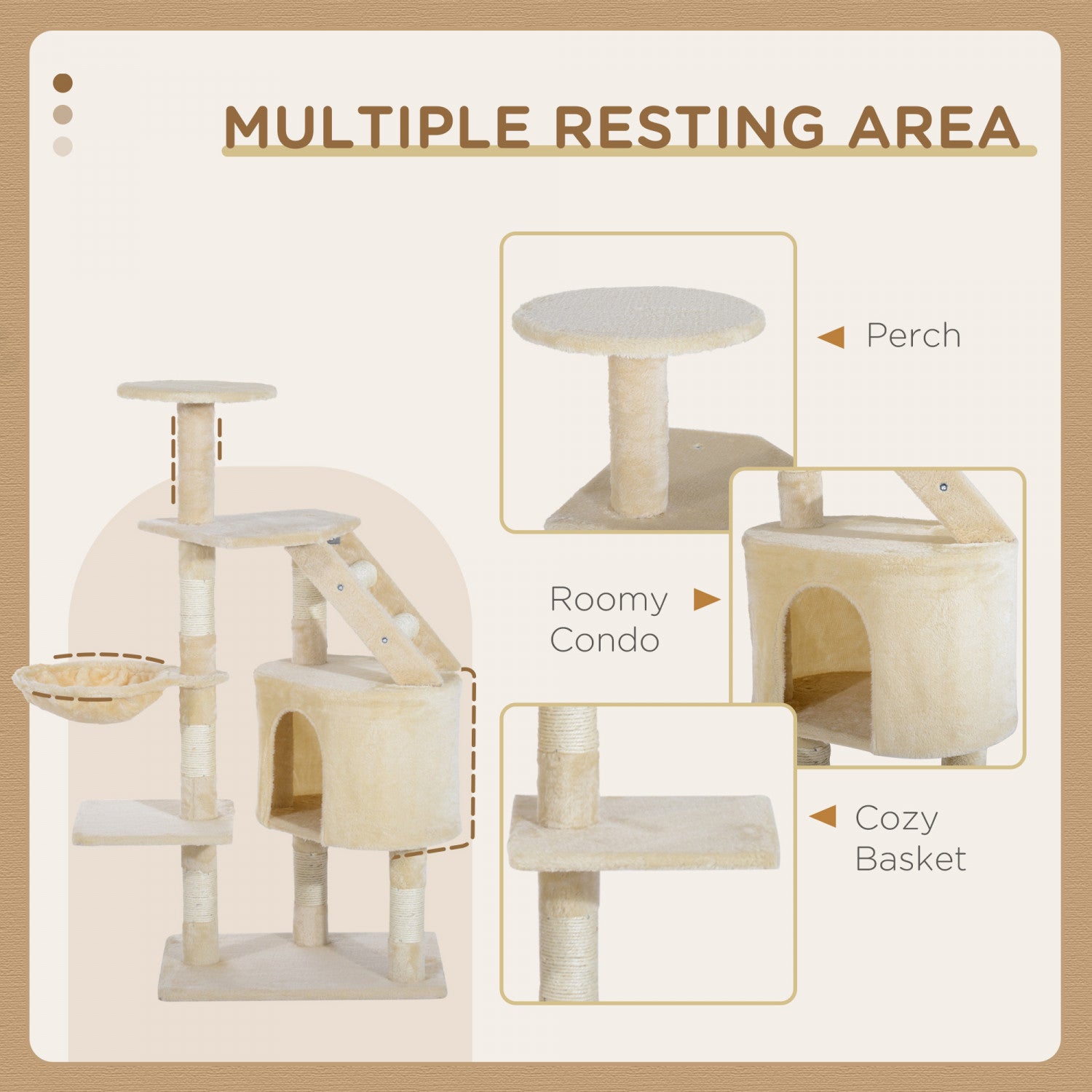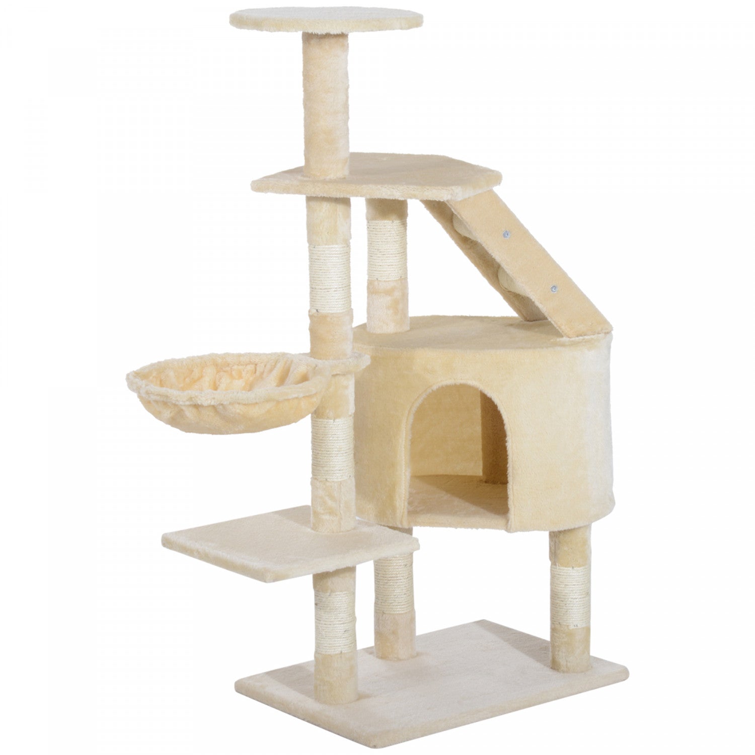 Pawhut 49 '' Arbre A Chat Tour Chaton Griffoir Griffoir Escalade Centre D'activite Maison De Jeu Meubles Pour Animaux De Compagnie Beige
