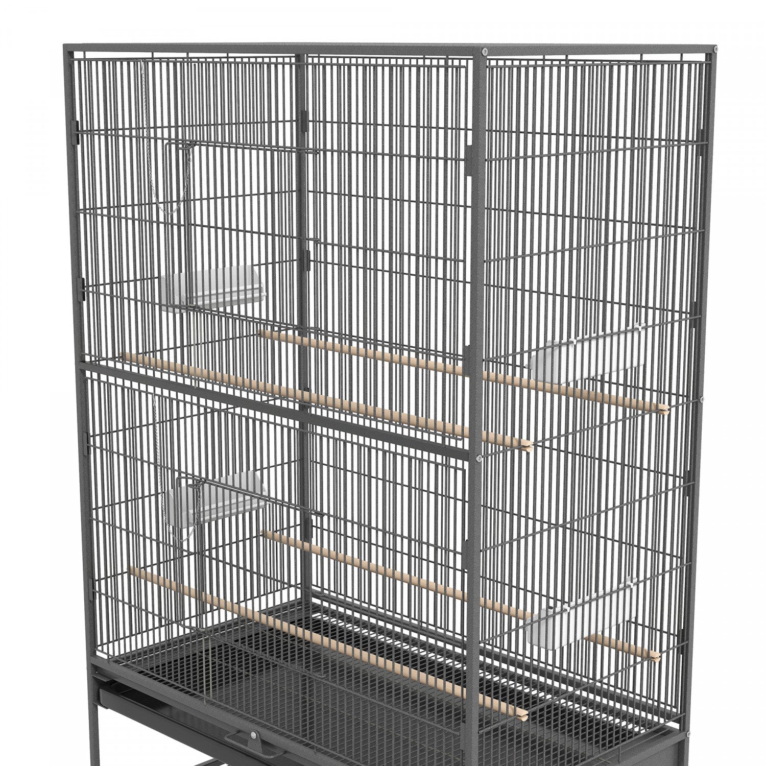 Pawhut Cage A Oiseaux 60" Avec Support Pour Calopsittes Canaris Inseparables Pinsons, Cage A Perruches Avec Roues, Plateau Amovible, Etagere De Rangement