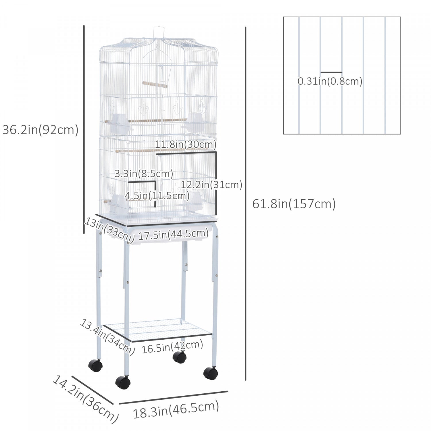 Gardez votre animal de compagnie stimule, en securite et heureux avec un kit de demarrage de cage pour oiseaux d'interieur avec support roulant de PawHut. Il favorise le bien-etre et la longevite de vos amis a plumes. Vos oiseaux de compagnie peuvent beneficier de la stimulation physique et mentale fournie par une cage a oiseaux roulante. Elle offre un grand espace de vie et de l'espace pour les activites. Cette cage a oiseaux a roulettes comprend 3 perchoirs en bois, 1 balancoire et 4 recipients a nourriture en plastique dont vos oiseaux pourront profiter.