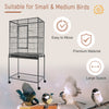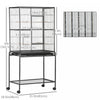 Cage A Oiseaux Portable Avec 4 Mangeoires Et 4 Perchoirs Pratique 81 X 48 X 163 Cm Noir Et Gris