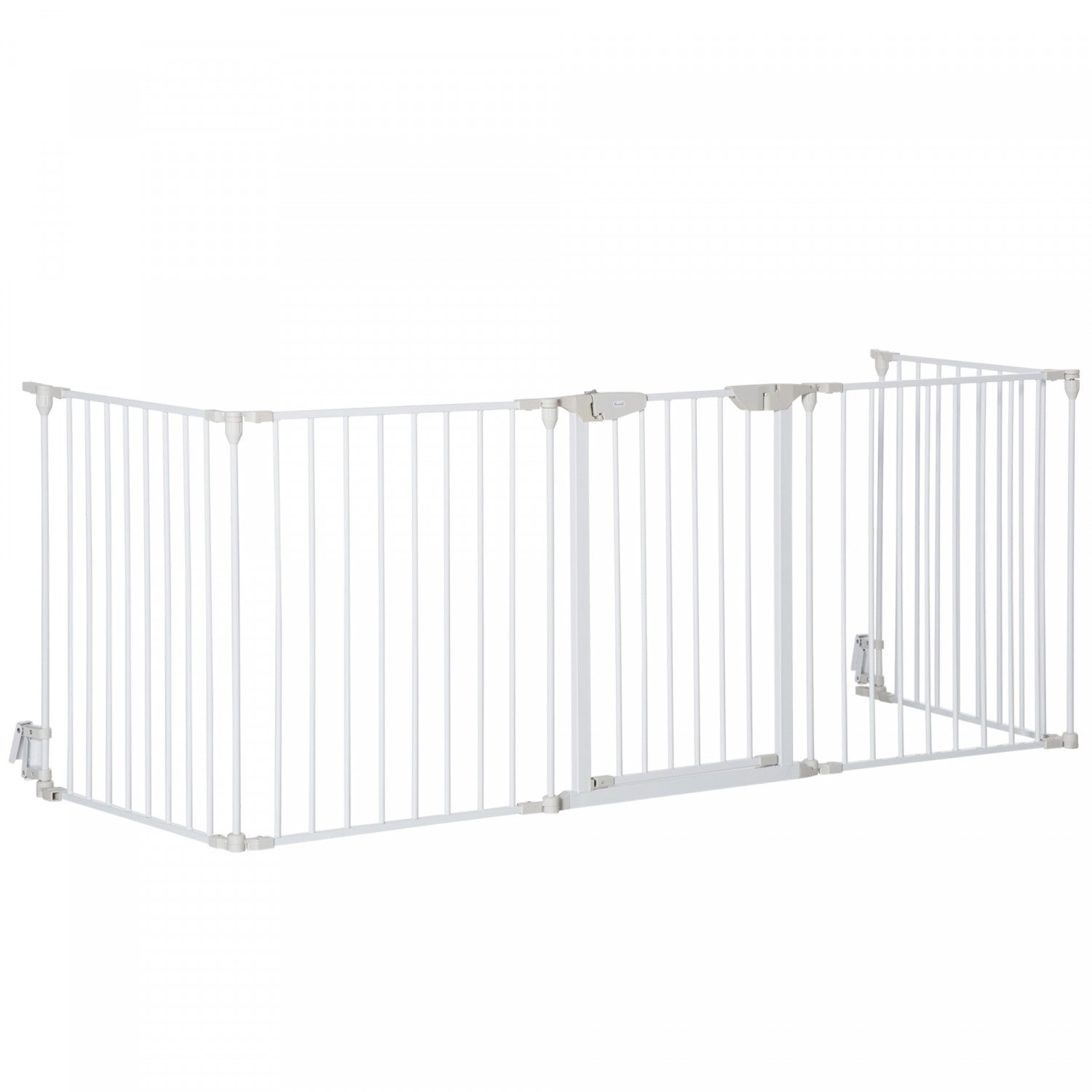 Pawhut Parc D'interieur Pliable Pour Chien De Petite Et Moyenne Taille Avec Porte, 5 Panneaux, 29" De Haut, Pour Escalier, Porte, Couloir, Blanc