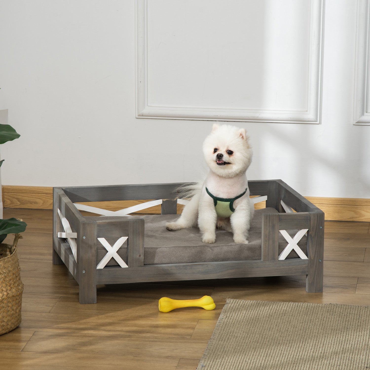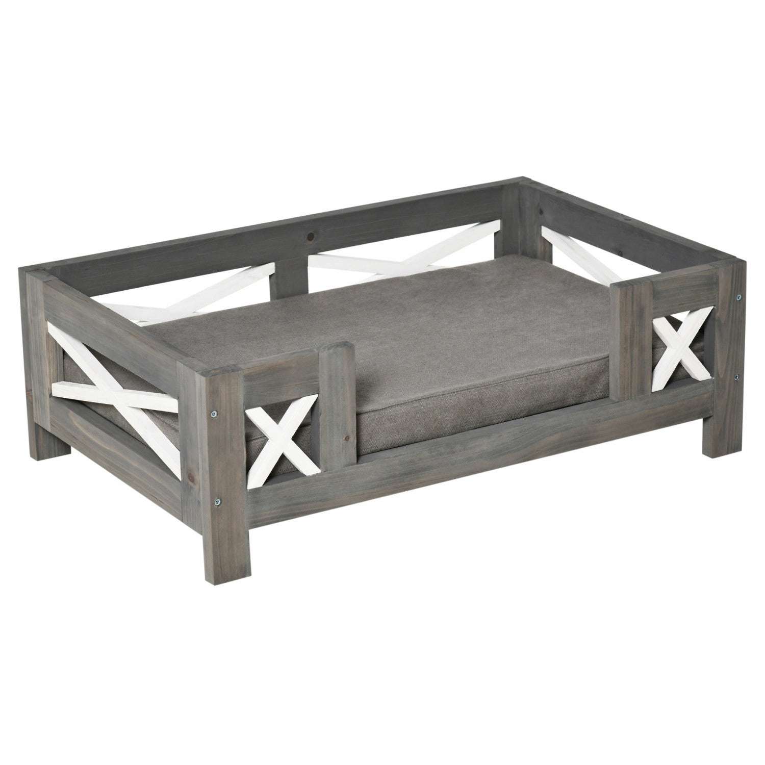 | Key Features | ● L'elegante perspective du lit pour animaux de compagnie sera un ajout accrocheur a votre maison; ● Sureleve par rapport au sol pour plus de confort et pour permettre la circulation de l'air de tous les cotes; ● Le cadre en bois de pin assure la stabilite du lit pour animaux de compagnie et convient a un usage quotidien; ● Le coussin rembourre et le tissu doux permettent a votre animal de rester au frais et a l'aise; ● Convient aux chiens de petite taille jusqu'a 26,4 lbs, la longueur de leur corps doit etre inferieure a 23.5"; ● Assemblage requis; |