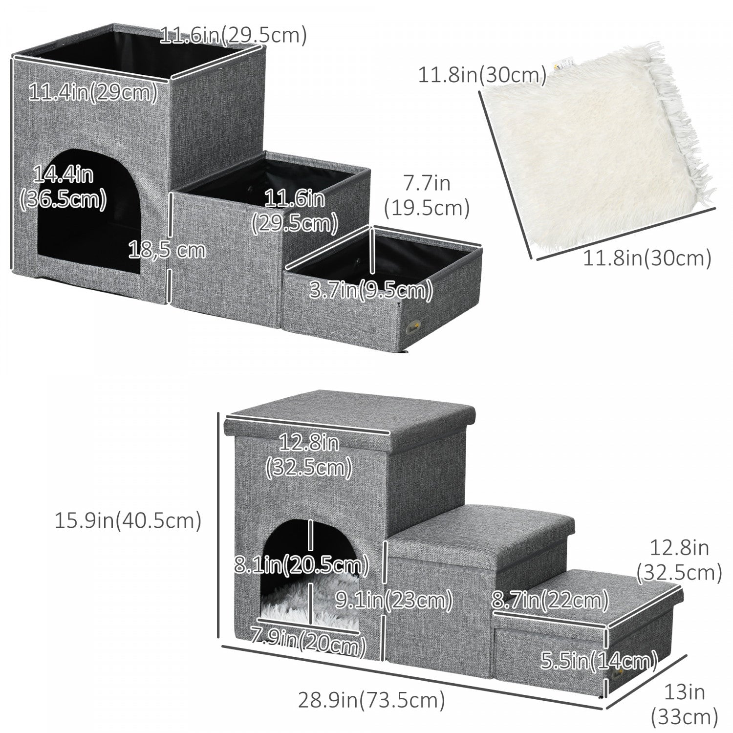 | Key Features | ● Soutenir leur demarche qu'ils soient vieillissants, de petite taille ou blesses ● Combinant un escalier pour animaux de compagnie, une maison pour chat et 2 paniers de rangement dans une seule unite ● Un coussin en peluche offre un endroit confortable pour se detendre, et l'ensemble du coussin peut etre nettoye a l'eau ● Le dessus de la marche peut etre ouvert pour plus de rangement ● Un trou sur le panneau lateral permet une entree et une sortie faciles ● Convient aux chats jusqu'a 10 lb (5 kg) ● Assemblage simple requis |