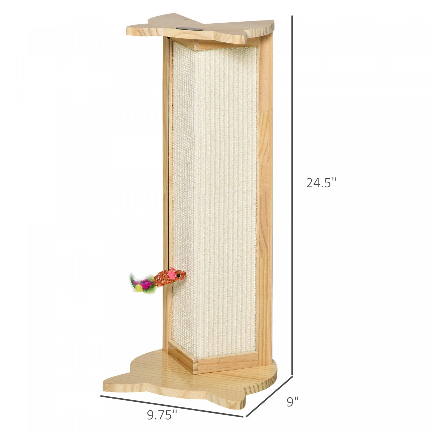 | Key Features | ● Greffoirs en sisal avec un jouet amusant pour satisfaire votre chat et soulager son stress ● Convient aux endroits a angle droit pour gagner de l'espace, comme les coins d'armoires et les coins de murs ● Fabrique en bois massif de pin tres solide et en sisal naturel ● Un jouet en forme d'animal suspendu pour plus de plaisir ● Protege vos meubles des dommages ● Convient aux chats de moins de 10lbs ● Aucun assemblage necessaire |