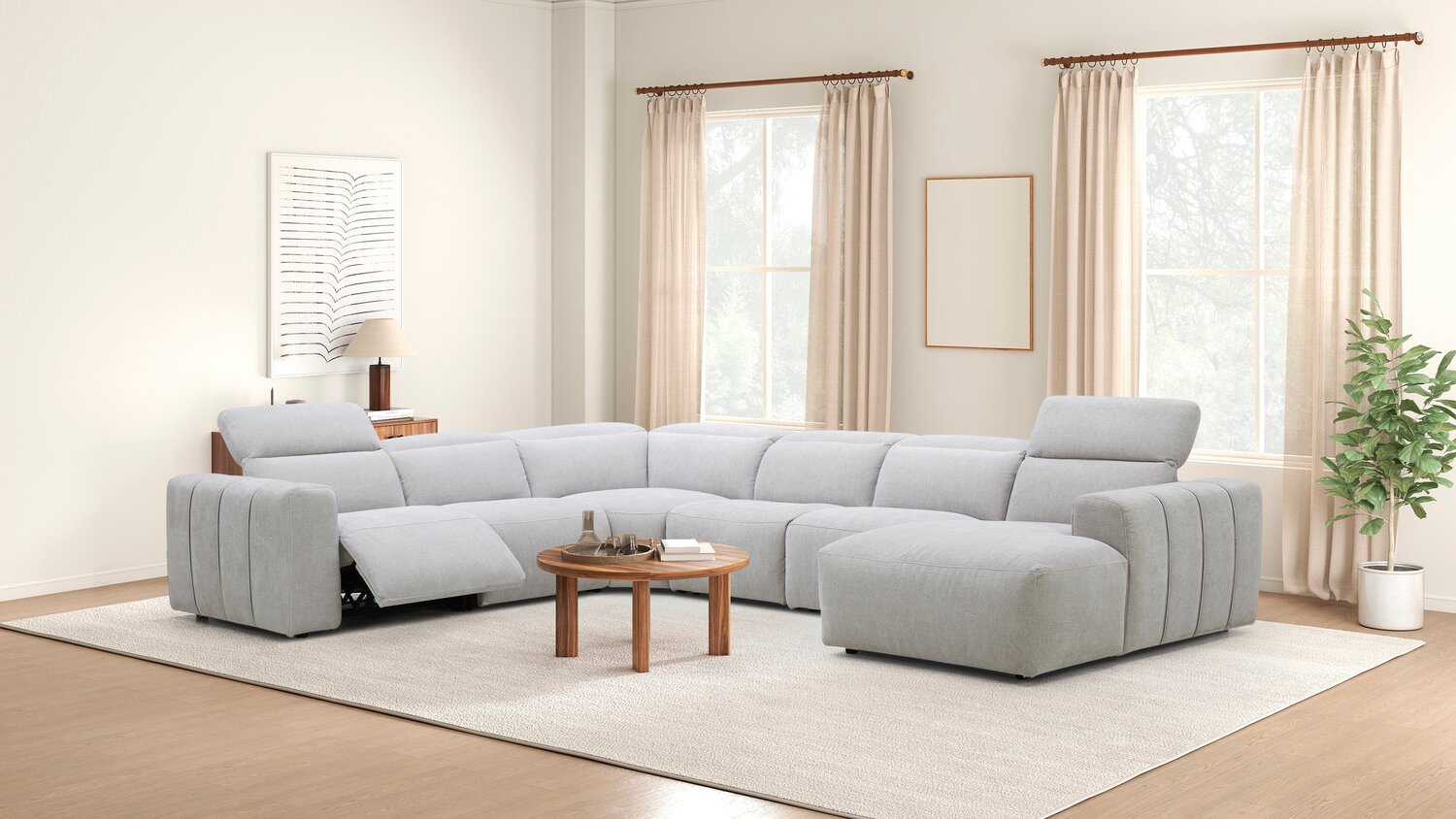 Sofa sectionnel de droite à inclinaison électrique Presidio 6 pièces - poudre