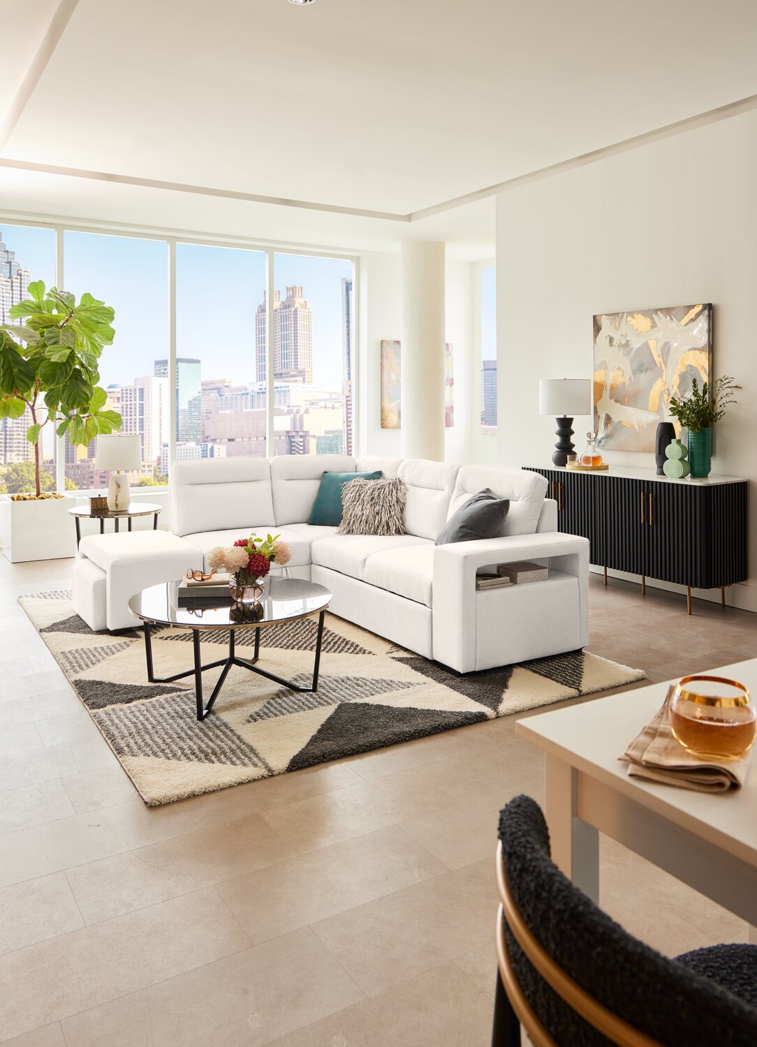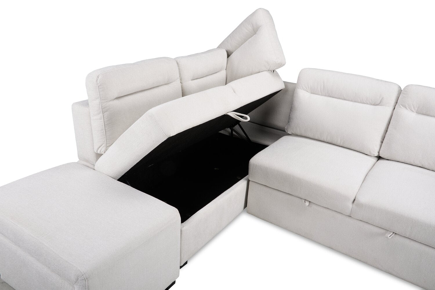 | Détails décoratifs | Un tissu blanc éclatant confère une sensation luxueuse à ce meuble et s’agence merveilleusement aux pattes noires du meuble. |