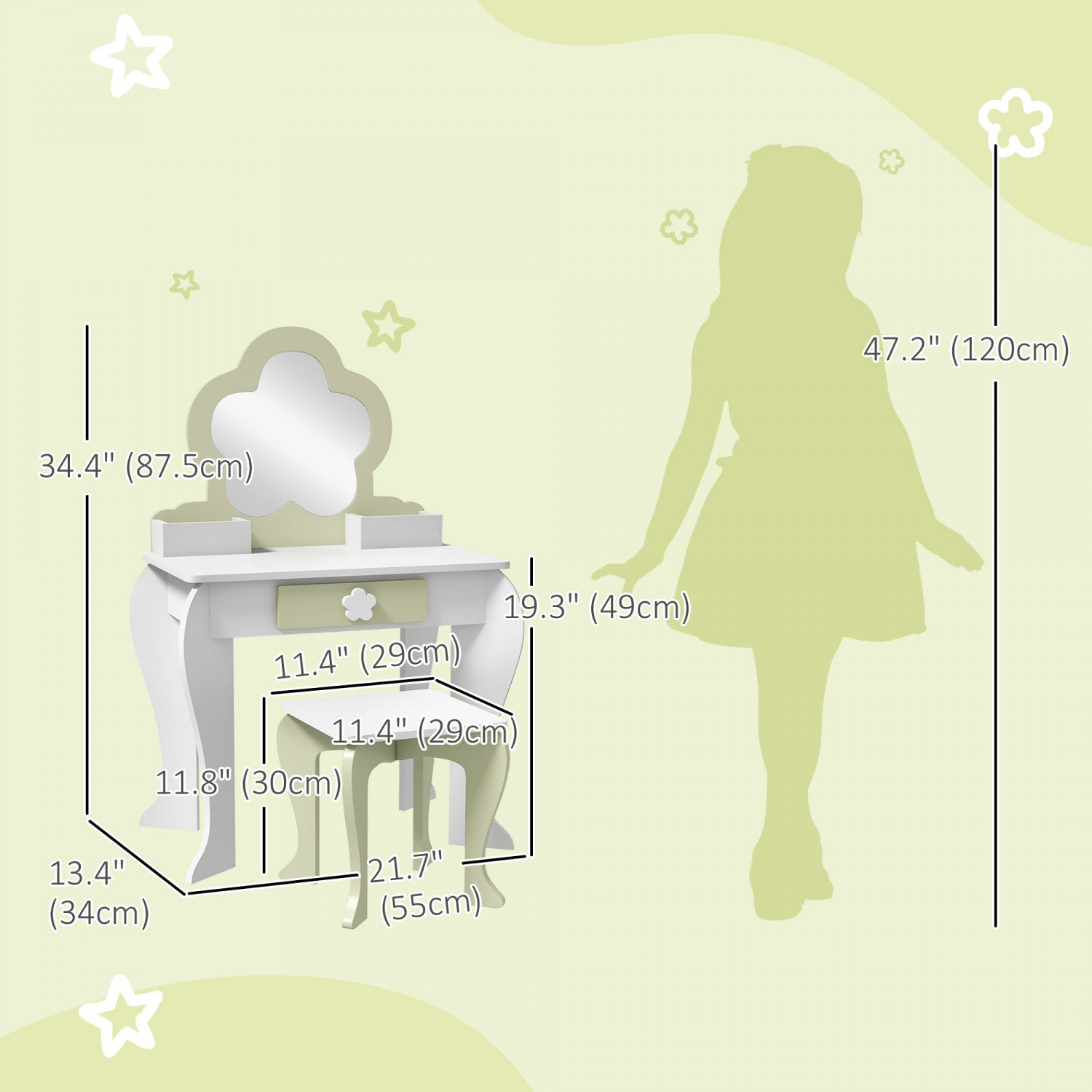 | Key Features | ● Un ensemble de coiffeuse pour enfants comprenant une coiffeuse, un tabouret assorti et un miroir ● Un joli motif floral qui rehaussera n'importe quelle piece ● Convient aux chambres, salles de jeux et creches ● Facile a nettoyer ● Les miroirs clairs et visibles sont en acrylique ● Comprend un tiroir pour ranger les objets en vrac ● Assemblage requis |