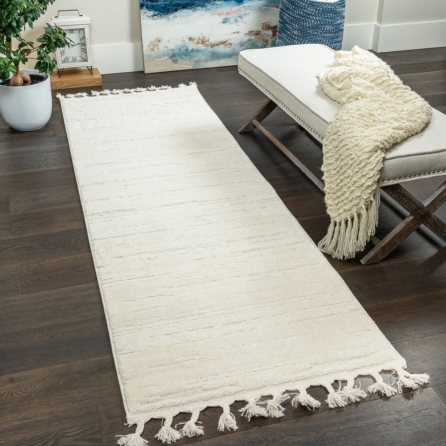Carpette à poil long Quinto crème à motif de vagues - 2 pi 7 po x 8 pi