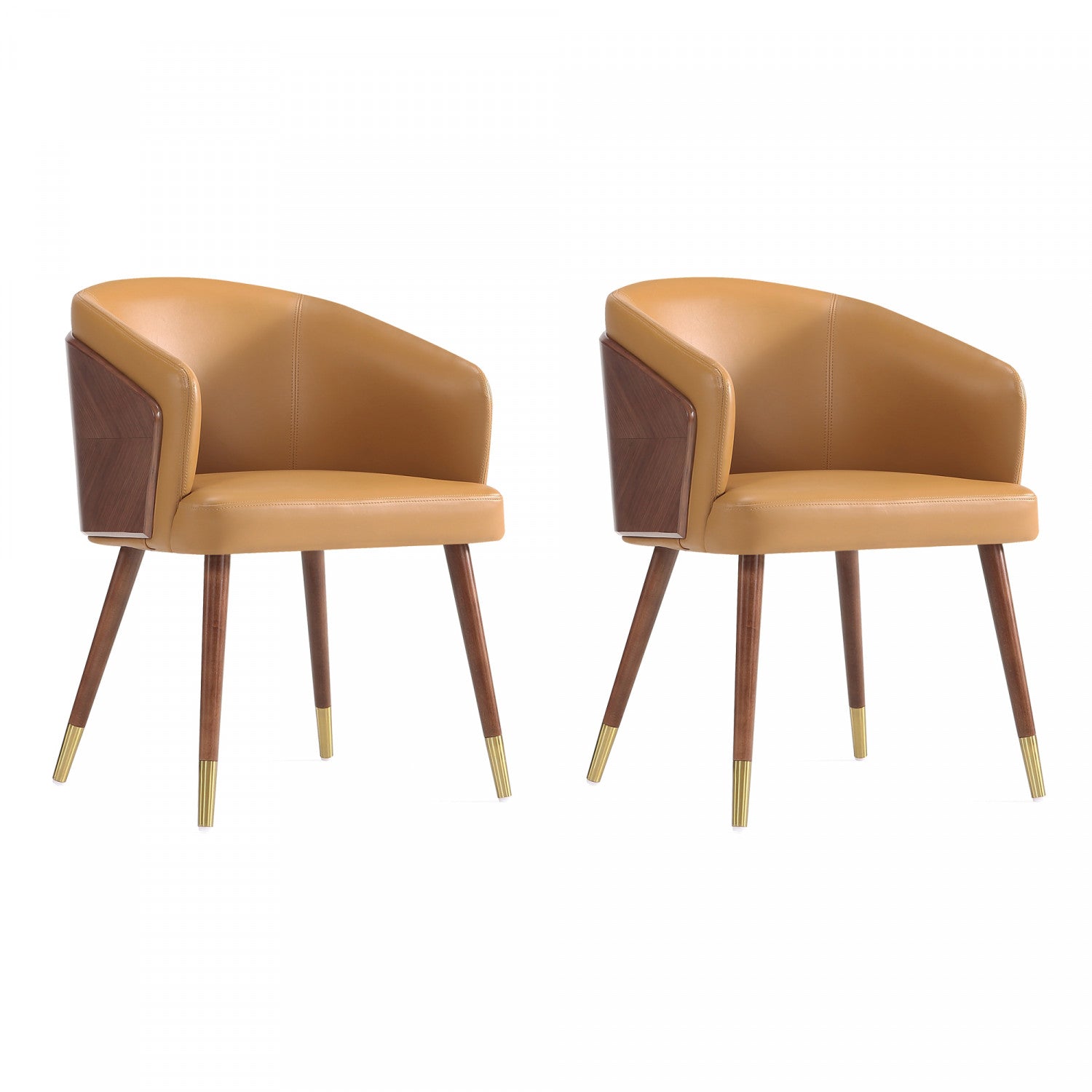 Chaise de salle a manger moderne en bois et cuir vegetalien Reeva couleur camel - Lot de 2