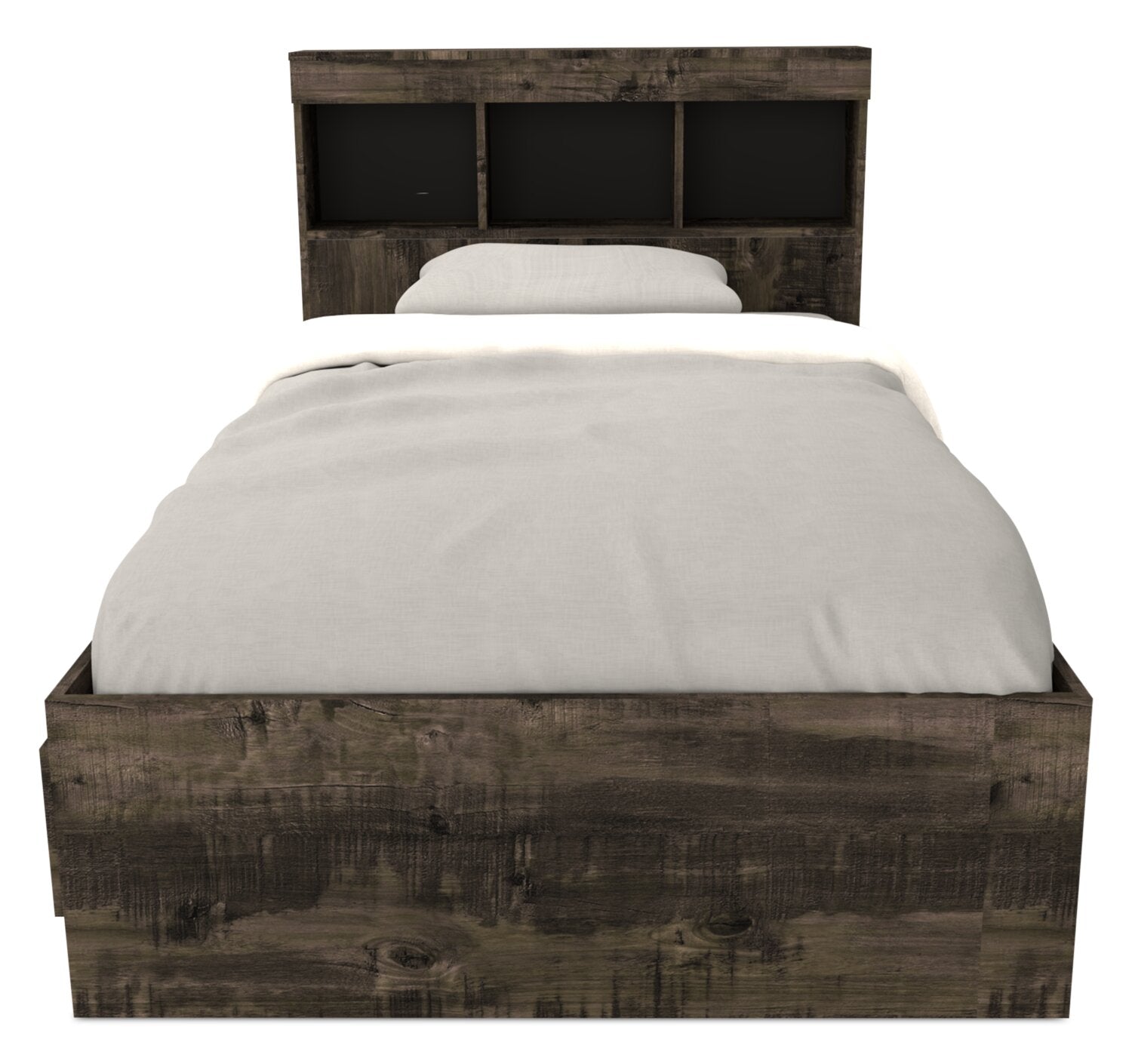 Lit matelot Riley avec ensemble de tête de lit bibliothèque pour enfants, fabriqué au Canada, gris - format lit simple