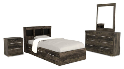 Ensemble lit matelot Riley 6 pièces avec tête de lit bibliothèque, commode, miroir et table de nuit, gris - format lit simple