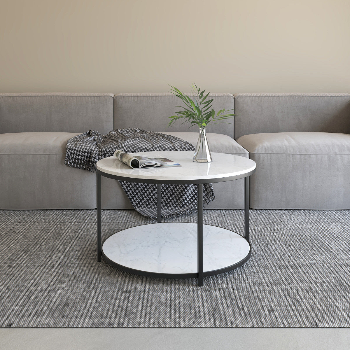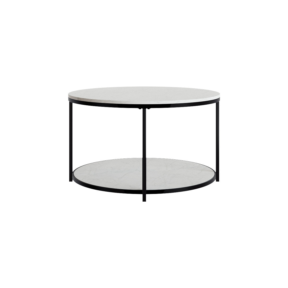 Table à café ronde moderne Silas de 40,75 po avec dessus en verre - platine avec métal et acrylique