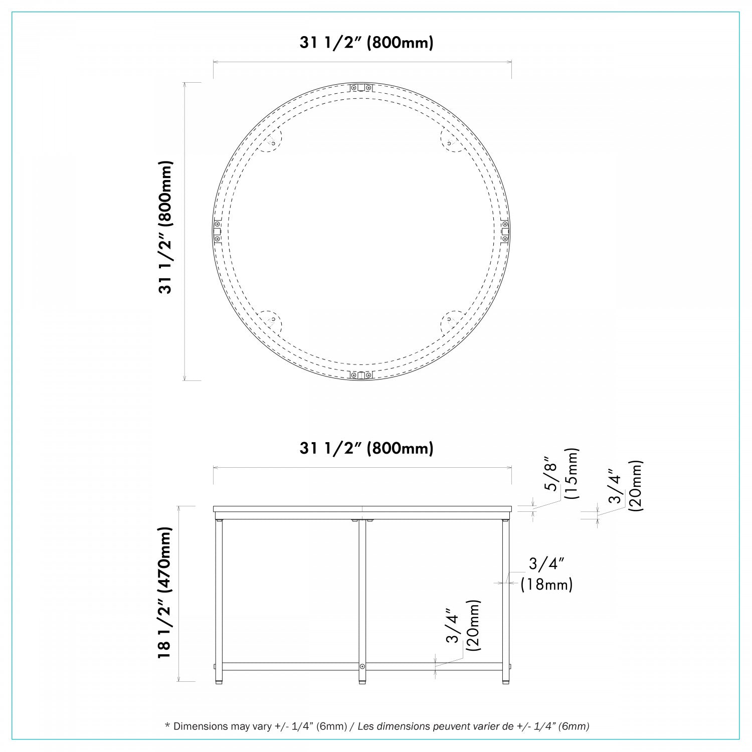 Largeur : 31,5 po (80,0 cm) Hauteur : 18,5 po (47,0 cm) Profondeur : 31,5 po (80,0 cm)