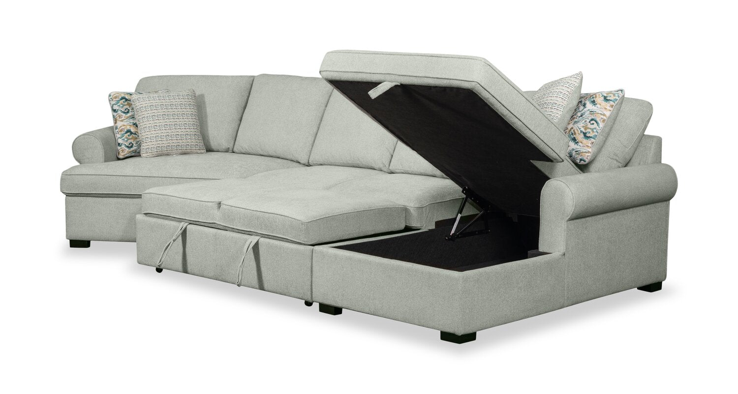 Options de rangement | Gardez vos couvertures additionnelles, vos oreillers et vos coussins rangés dans le fauteuil long de rangement relevable. |