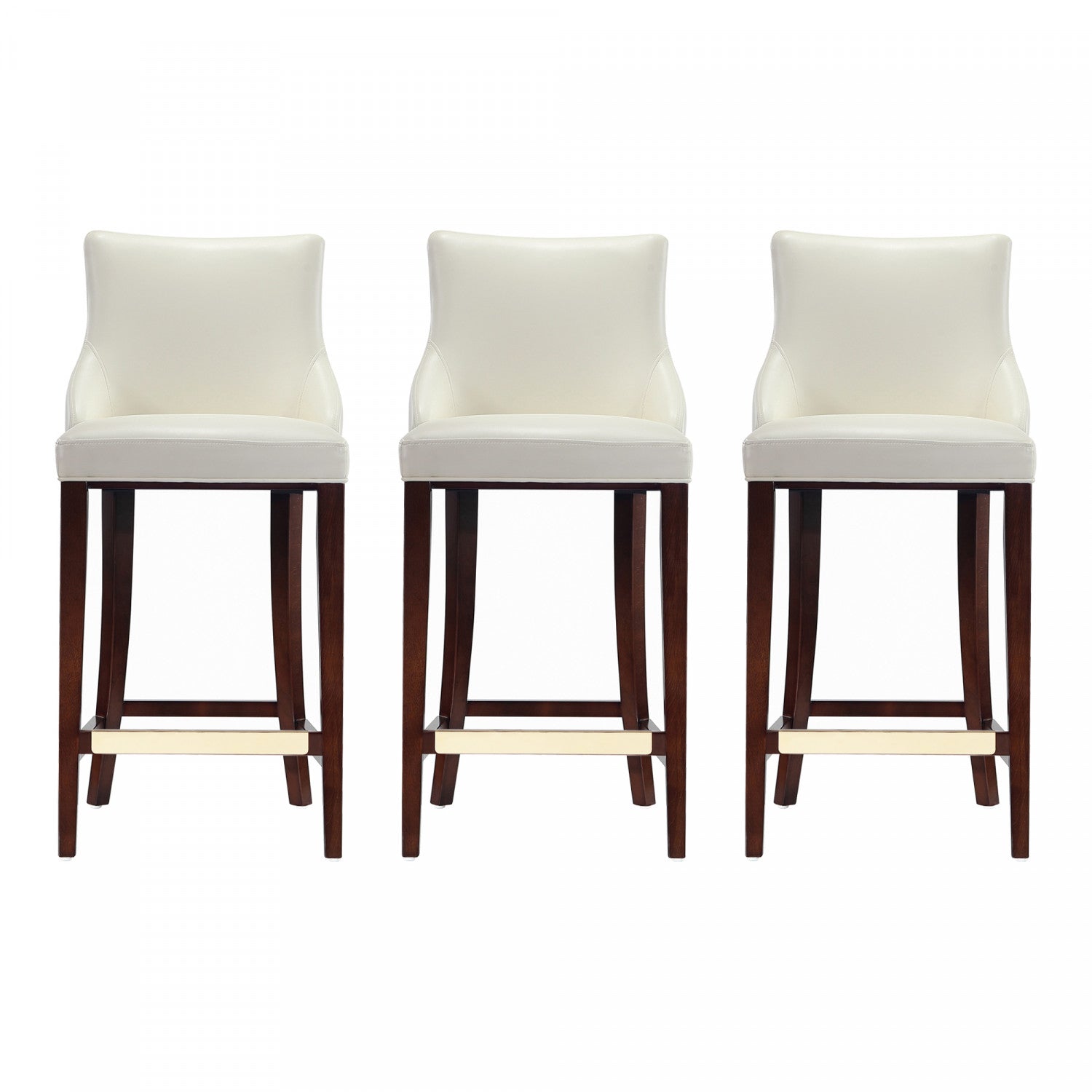 Tabouret de bar moderne en bois Shubert avec revetement en ivoire - Lot de 3
