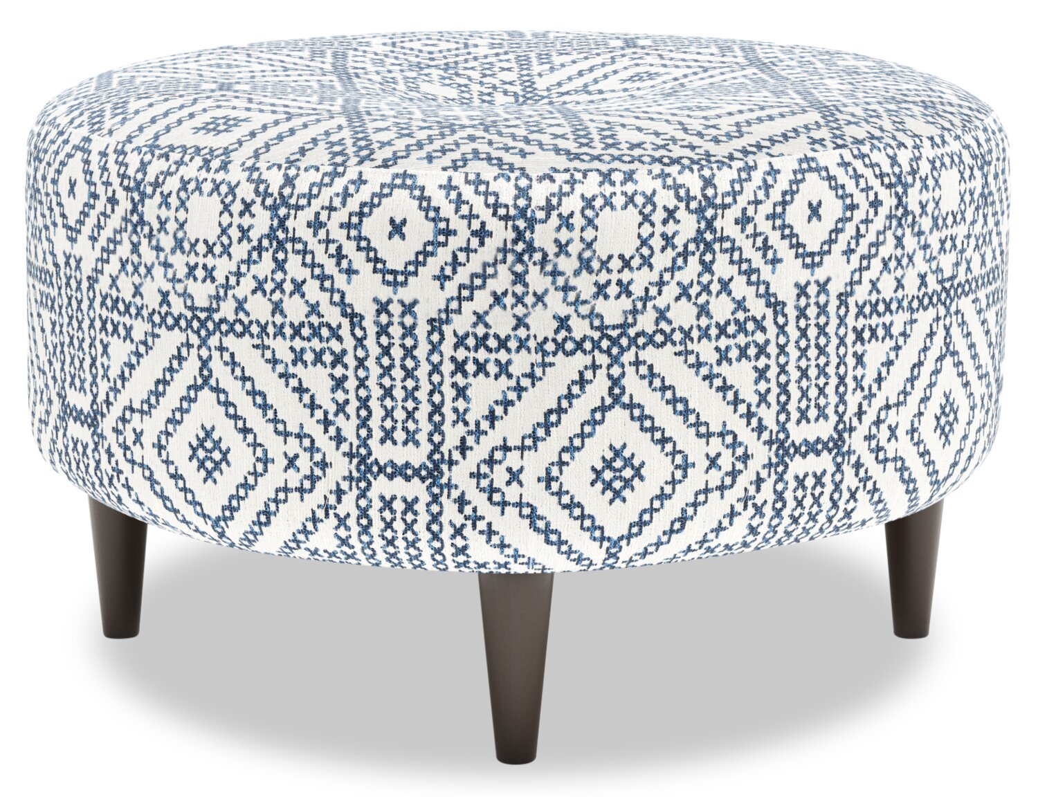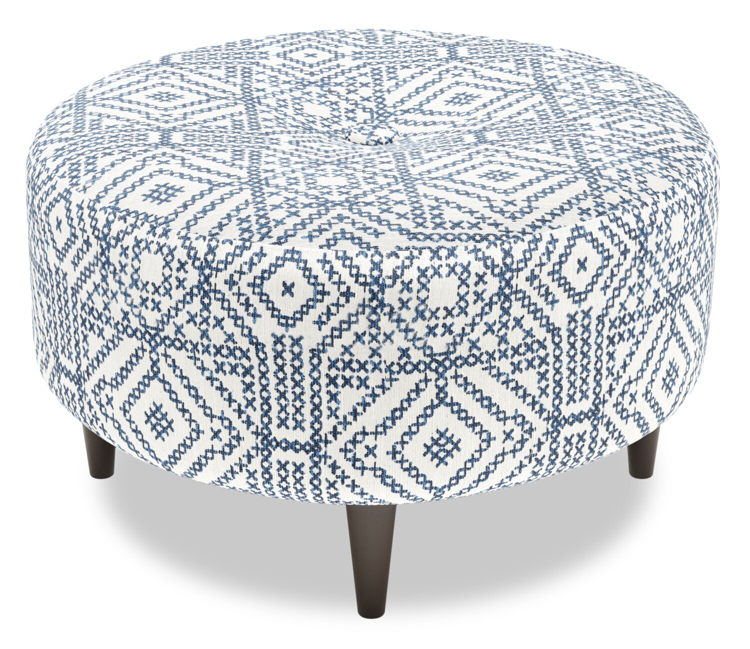 Détails décoratifs | Un capitonnage à un seul bouton au centre du dessus du pouf rond confère une apparence moelleuse à ce meuble. |