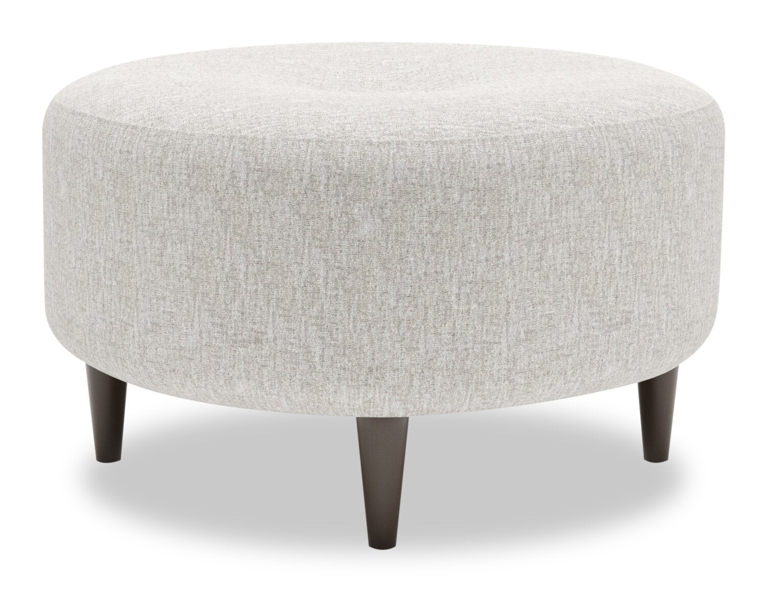 Détails décoratifs | Un capitonnage à un seul bouton au centre du dessus du pouf rond confère une apparence moelleuse à ce meuble. |