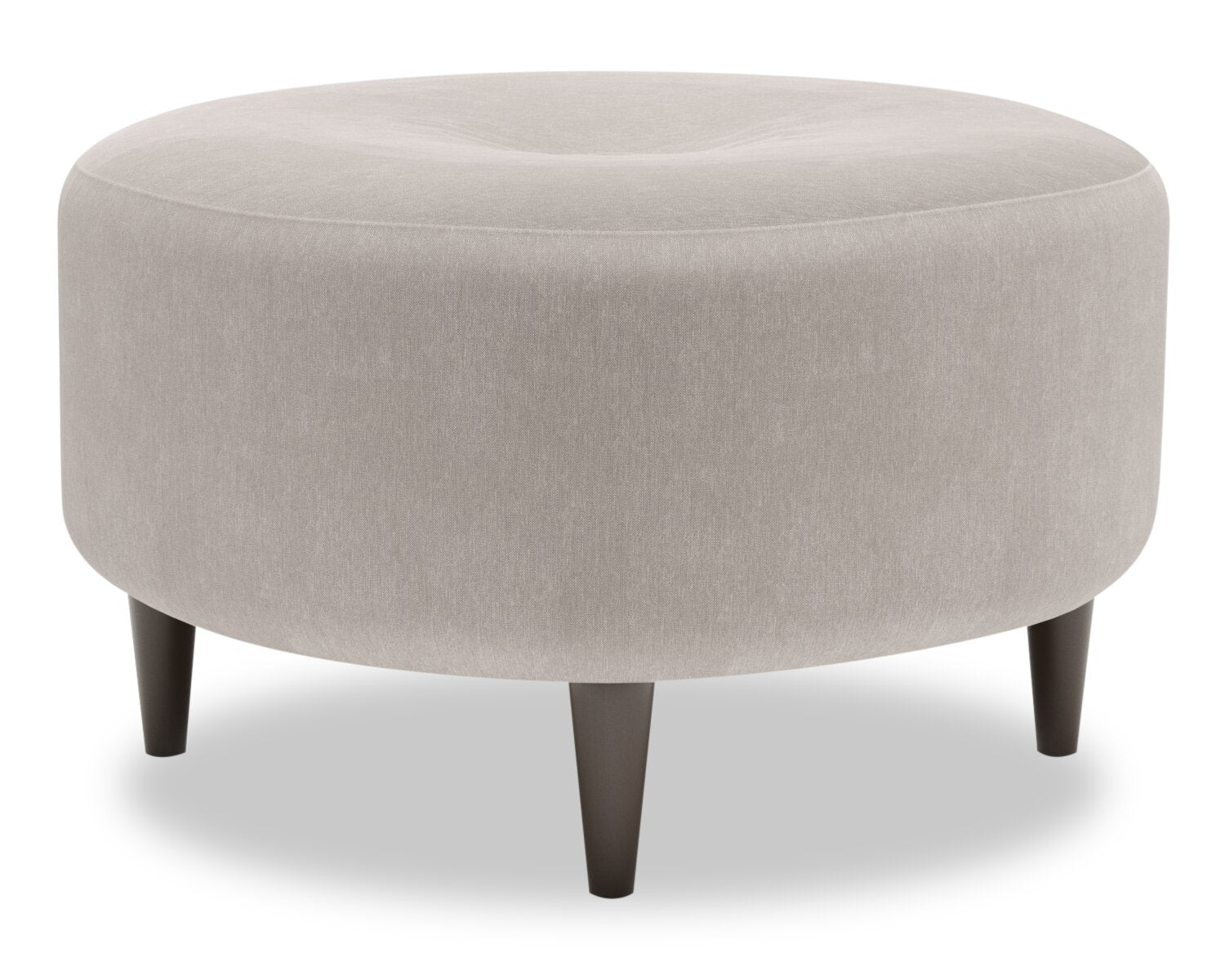 Détails décoratifs | Un capitonnage à un seul bouton au centre du dessus du pouf rond confère une apparence moelleuse à ce meuble. |