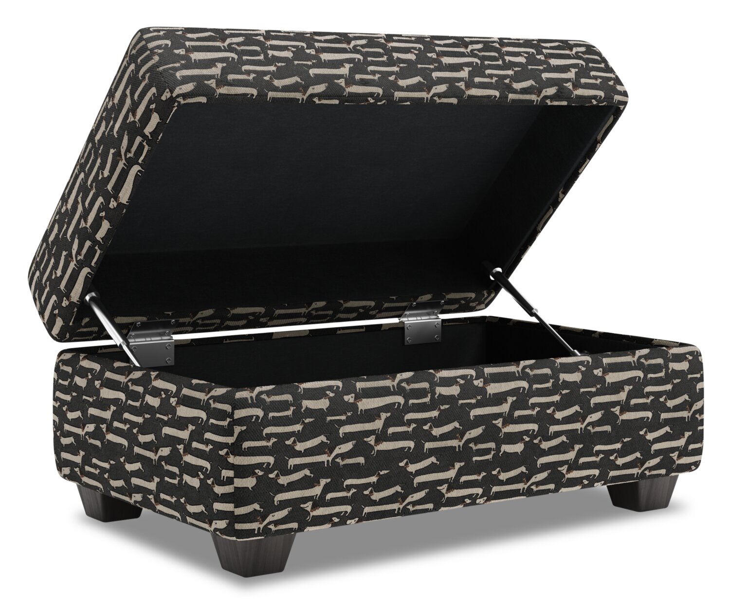 Options de rangement | Soulevez le couvercle du pouf pour y ranger des couvertures et des coussins supplémentaires à portée de main. |