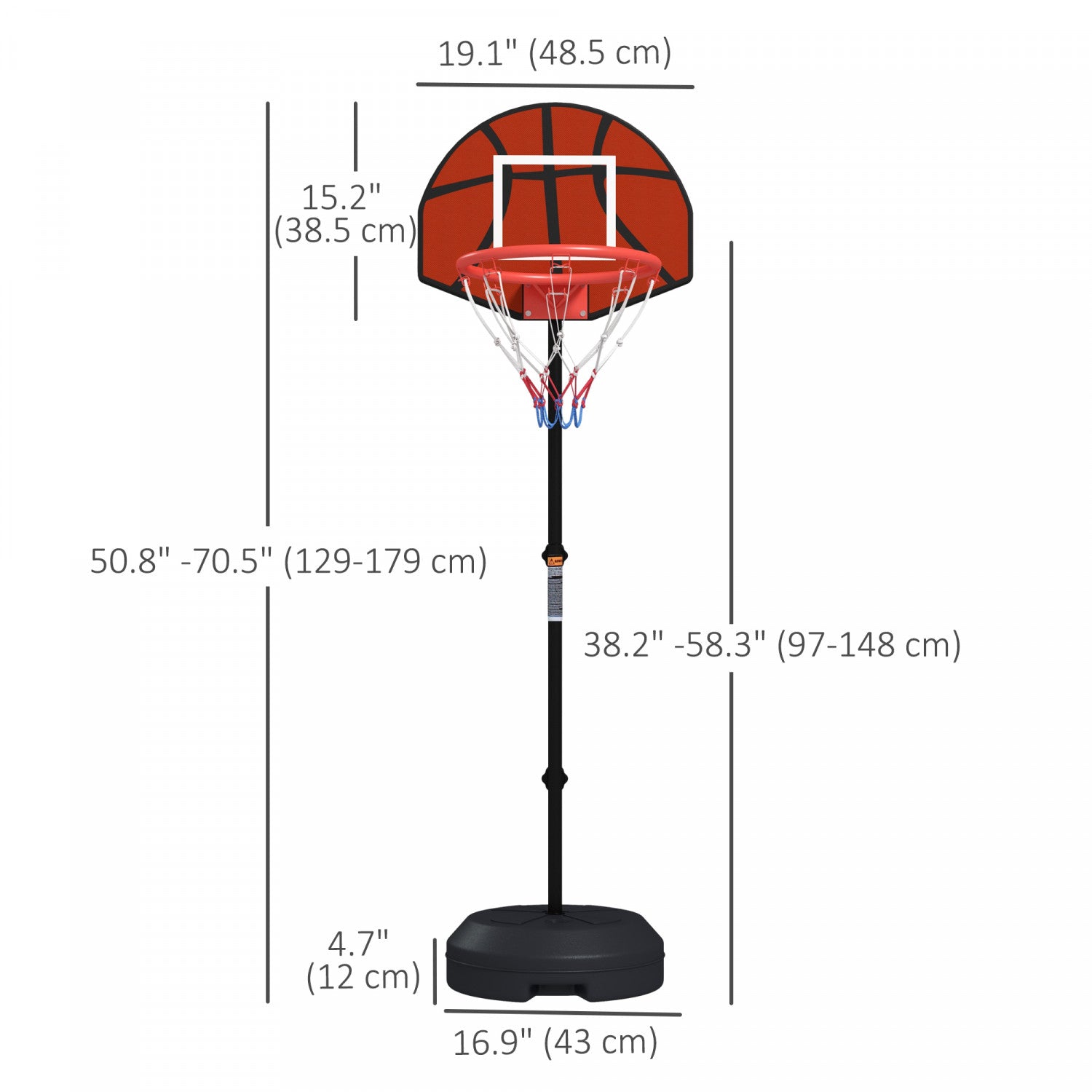| Renseignements supplémentaires | - Couleur : noir et marron ; - Materiaux : Acier, PE ; - Taille du panneau arriere : 15,2" L x 19,1" H (38,5 x 48,5 cm) ; - Taille de la base : ⌀16,9" x 4,7" H (⌀43 x 12 cm) ; - Taille du cerceau : ⌀13,4" (⌀34 cm) ; - Hauteur totale : 50,8"-70,5" (129-179 cm) ; - Hauteur du panier de basket : 38,4"-58,3" (97,5-148 cm) ; - Capacite de base : 31 lb. (14 kg) d'eau, 40 lb. (18 kg) de sable ou maximum 33 lbs. (15 kg) d'eau et de sable; - Age certifie : 6+ ; - Etiquette de l'article : A61-054V00BK ; |