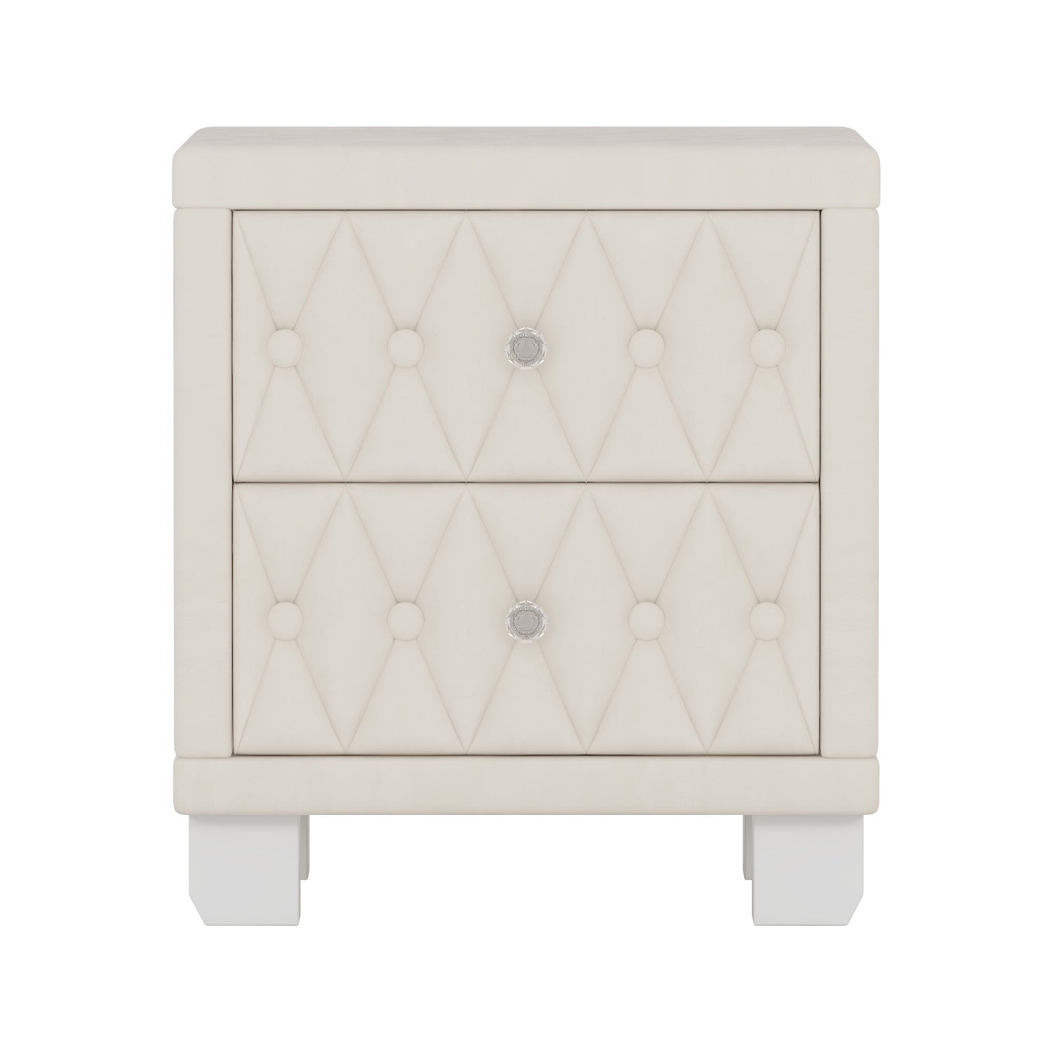 Sophia Table de Nuit Elegante en Velours avec Tiroirs et Design Capitonne, Beige
