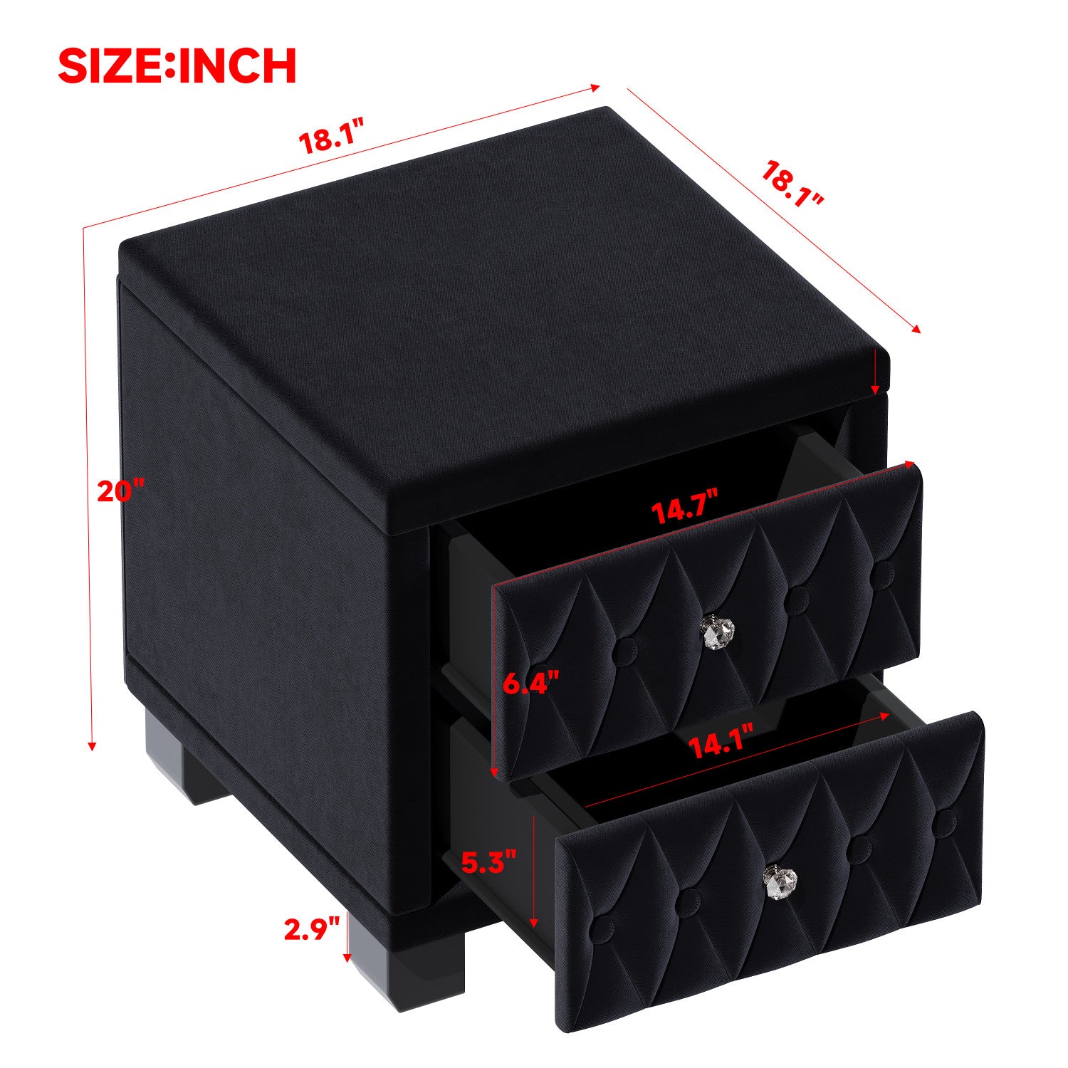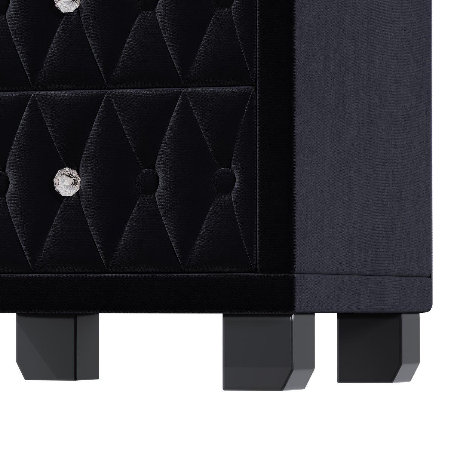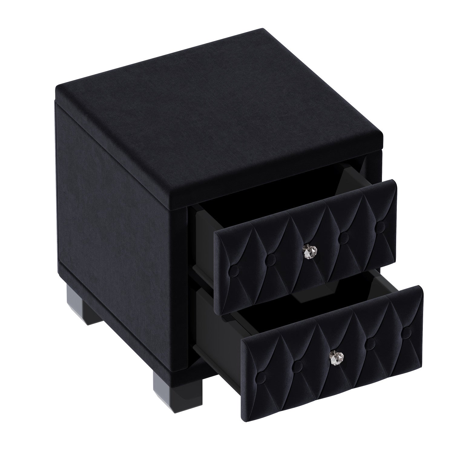 Sophia Table de Nuit Elegante en Velours avec Tiroirs et Design Capitonne, Noir