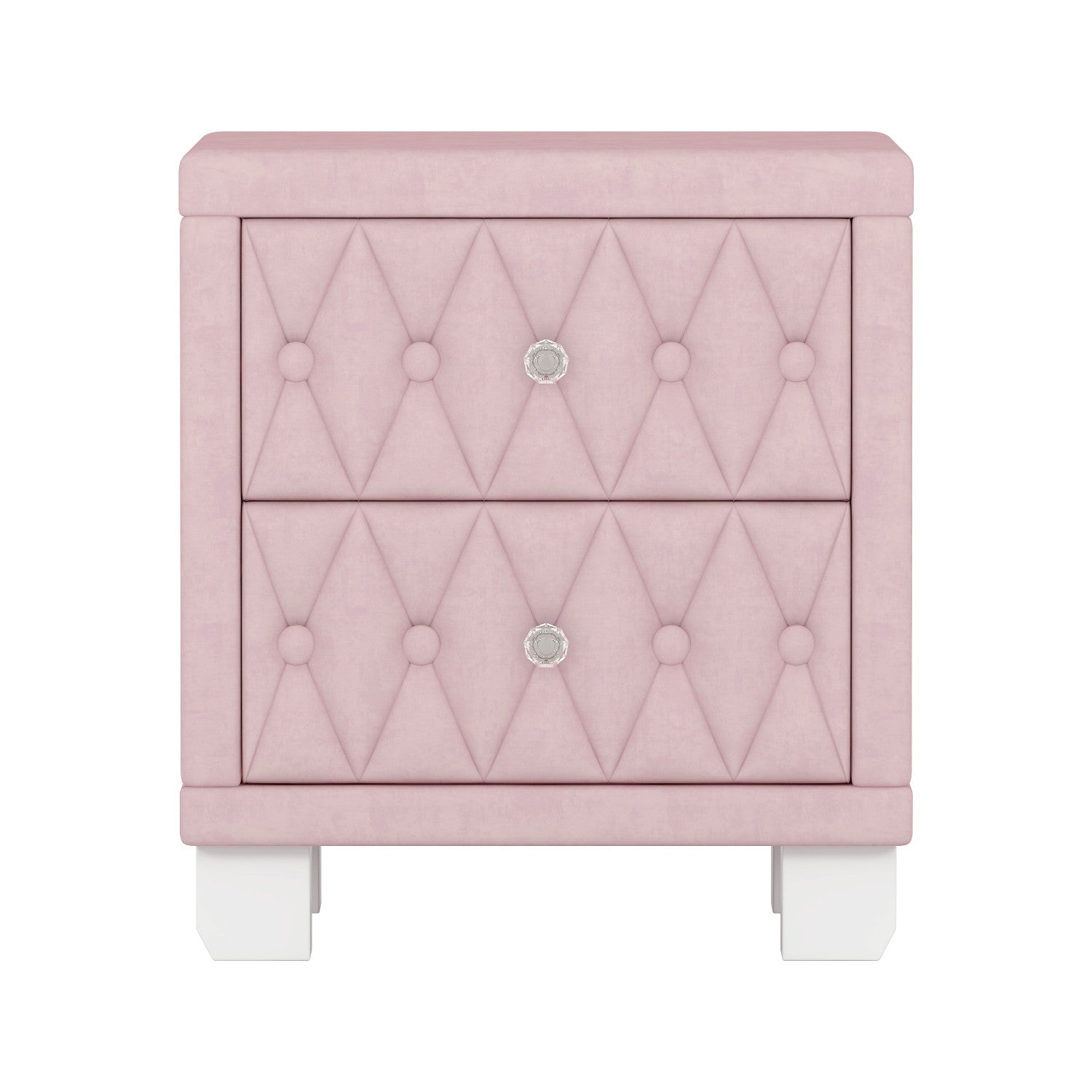 Sophia Table de Nuit Elegante en Velours avec Tiroirs et Design Capitonne, Rose