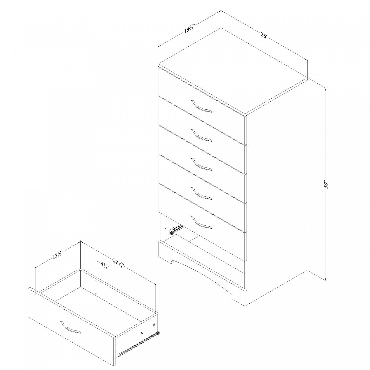Largeur : 26 po (66,0 cm) Hauteur : 50 po (127,0 cm) Profondeur : 18,75 po (47,6 cm)