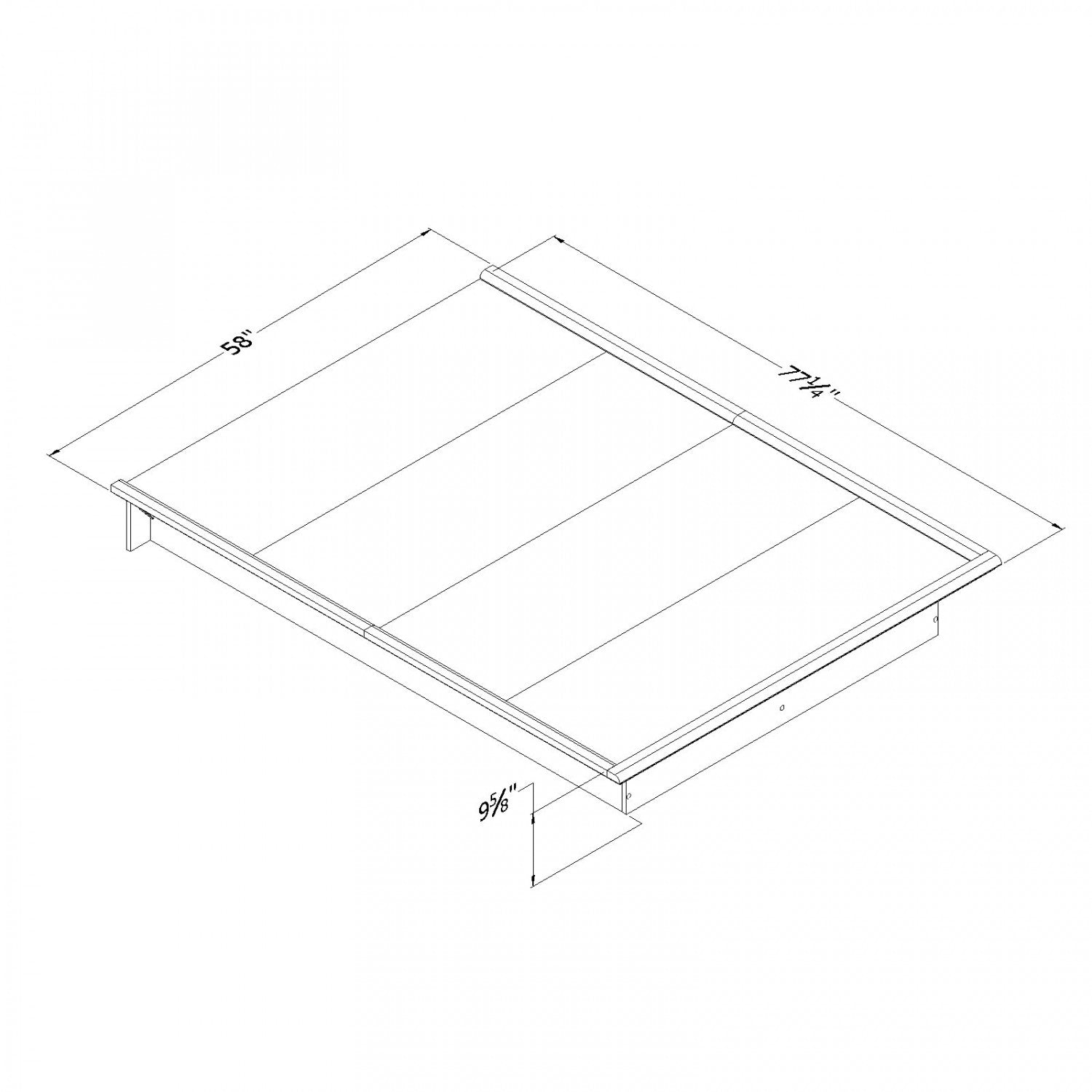 Largeur : 58 po (147,3 cm) Hauteur : 9,75 po (24,8 cm) Profondeur : 77,25 po (196,2 cm)